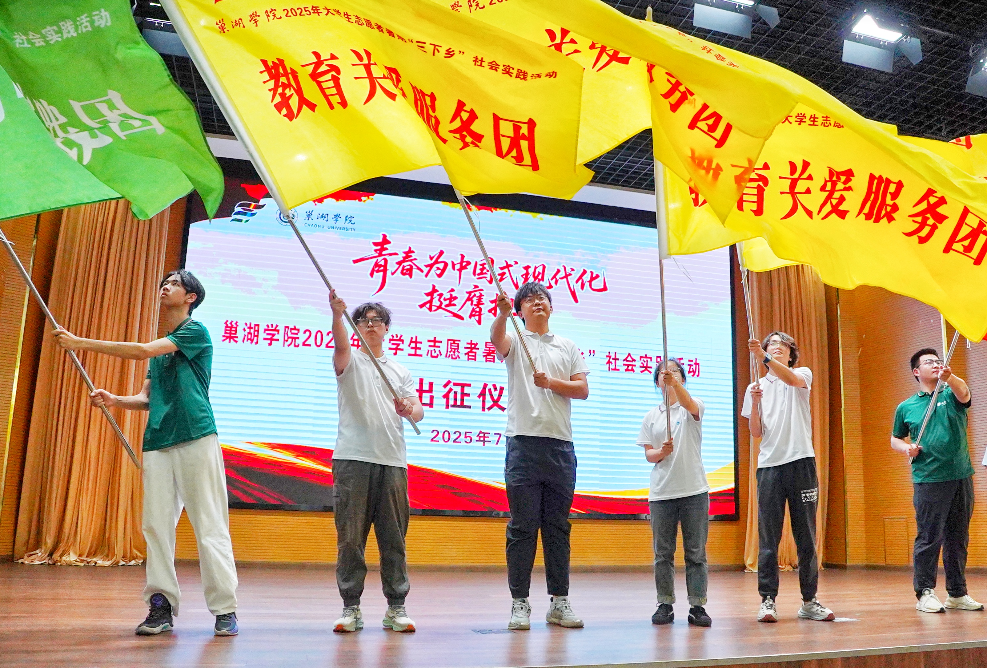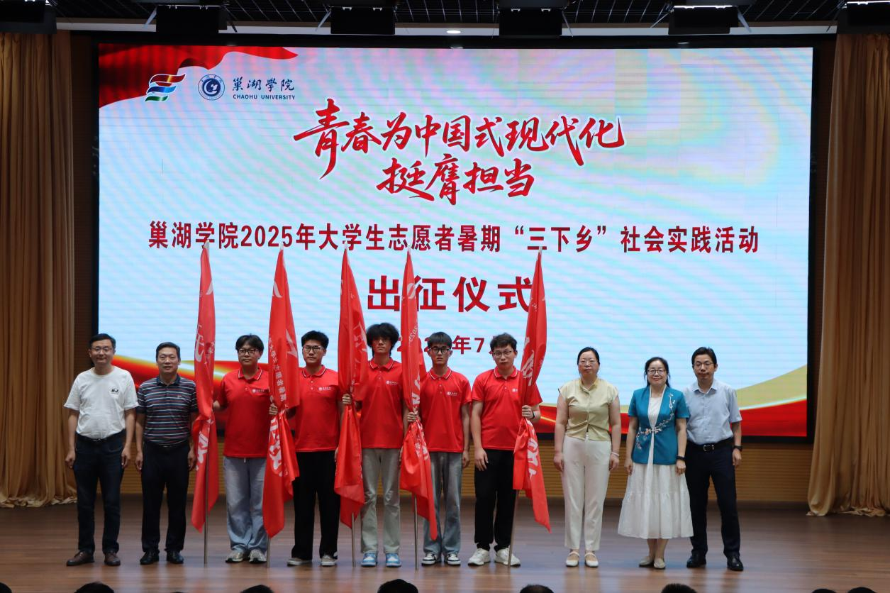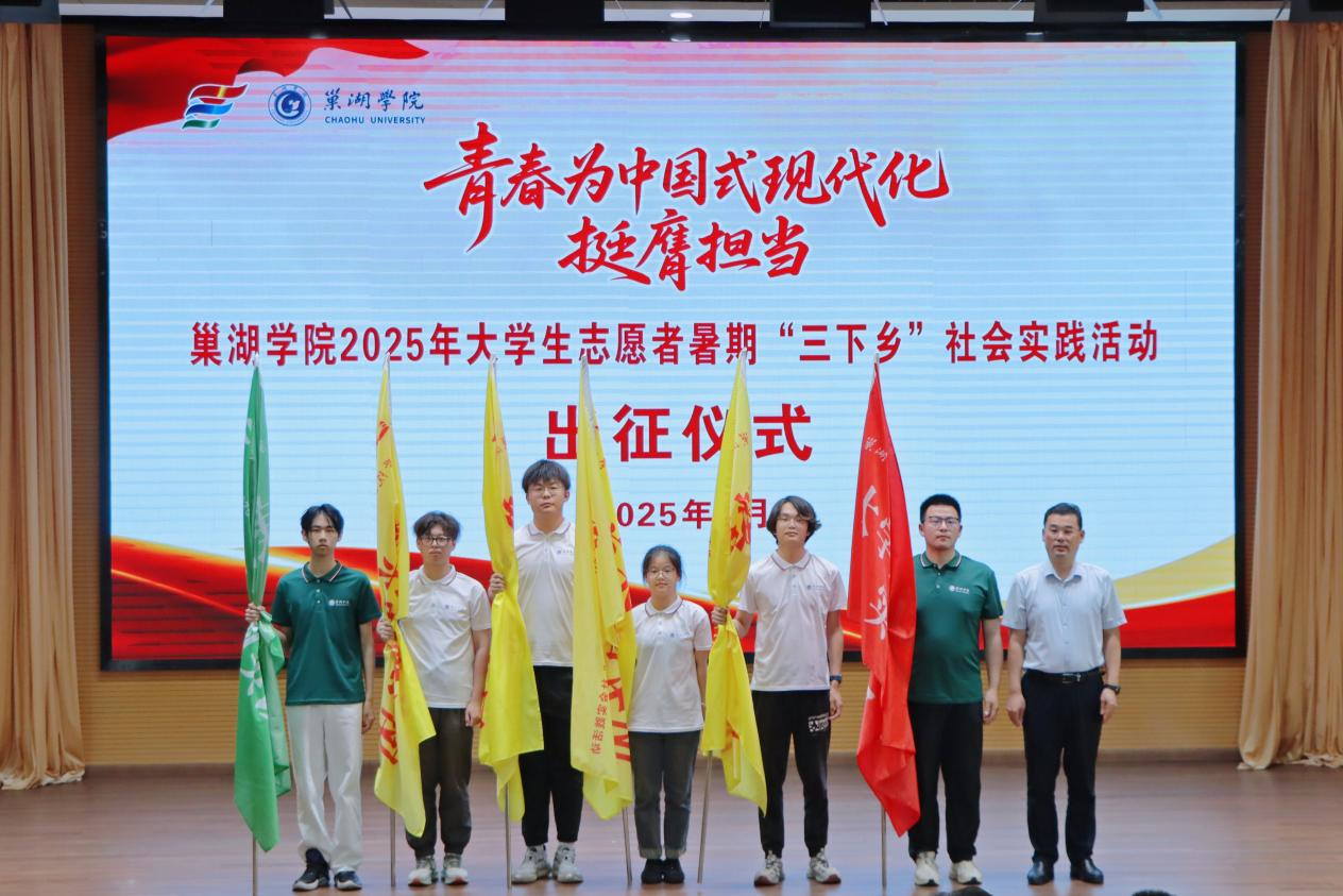 7月1日下午,巢湖學院在求實樓報告廳舉行2025年大學生志愿者暑期“三下鄉”社會實踐活動出征儀式。校黨委副書記宋立敏,校黨委委員、組織部部長柯應根,校黨委委員、宣傳部部長張連福,辦公室、學工部、保衛部、教務處、后勤處等相關部門負責人,各學院黨委書記、副書記、團委書記、校級及以上重點團隊指導教師和學生代表350余人參加。儀式由校團委書記王倩主持。
