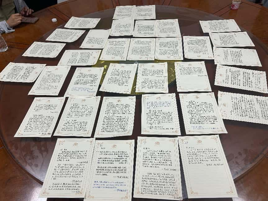 匯演臨近尾聲,離別亦隨著夕陽到來。當志愿者老師們帶來最后一首合唱,孩子們一個接一個的跑到老師身邊,一起唱出“每當我找不到存在的意義,每當我迷失在黑夜里,夜空中最亮的星,請指引我靠近你”。是的,這場相遇或許短暫,志愿者們能做的或許只如點點星光,但那些一同在晨光里讀過的詩,在星空下唱過的歌,在掌心傳遞過的溫度,早已在彼此生命里刻下了深深的印記,可以點燃更明亮的未來。當孩子們手攥著畫滿愛心的卡片、書信、用紙巾折出的玫瑰花和小蝴蝶等各種“禮物”送給老師時,志愿者們都忍不住偷偷抹眼淚,卻又立刻轉過身笑著說“我們還會再見的”。