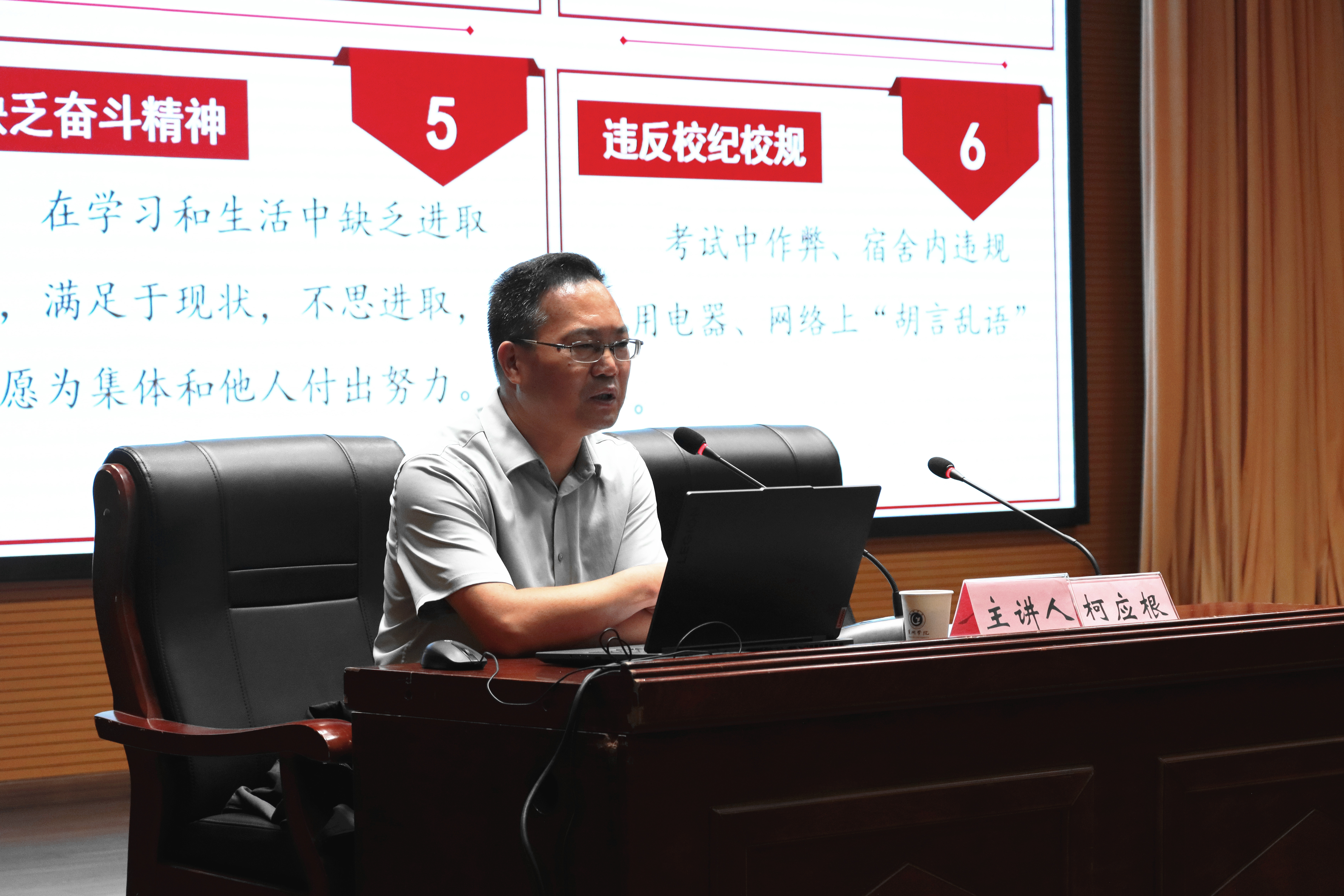 10月15日下午,校黨委委員、黨委組織部部長柯應(yīng)根在求實(shí)樓報(bào)告廳為第十九期“青馬工程”大學(xué)生骨干培訓(xùn)班學(xué)員作題為《青春逐夢 挺膺擔(dān)當(dāng) 爭做巢院新青年》專題報(bào)告。報(bào)告會由校團(tuán)委書記王倩主持。