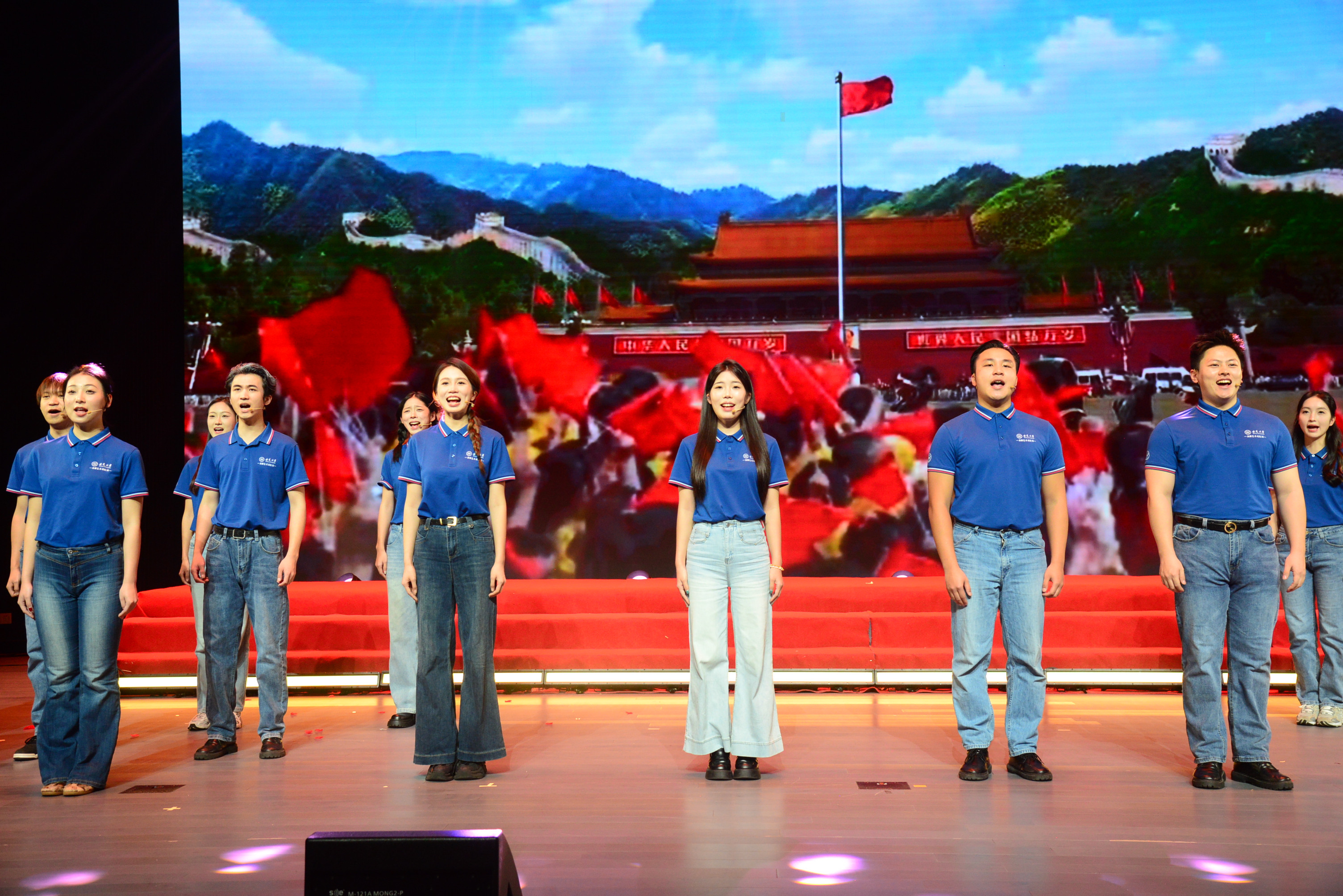 從文明源頭到嶄新時代,復興之路壯闊鏗鏘。朗誦《復興頌》與大合唱《歌唱祖國》將現場氛圍推向最高潮,激昂旋律入耳,深情誦讀動心,師生們一同起立合唱,盡情抒發愛國情懷。