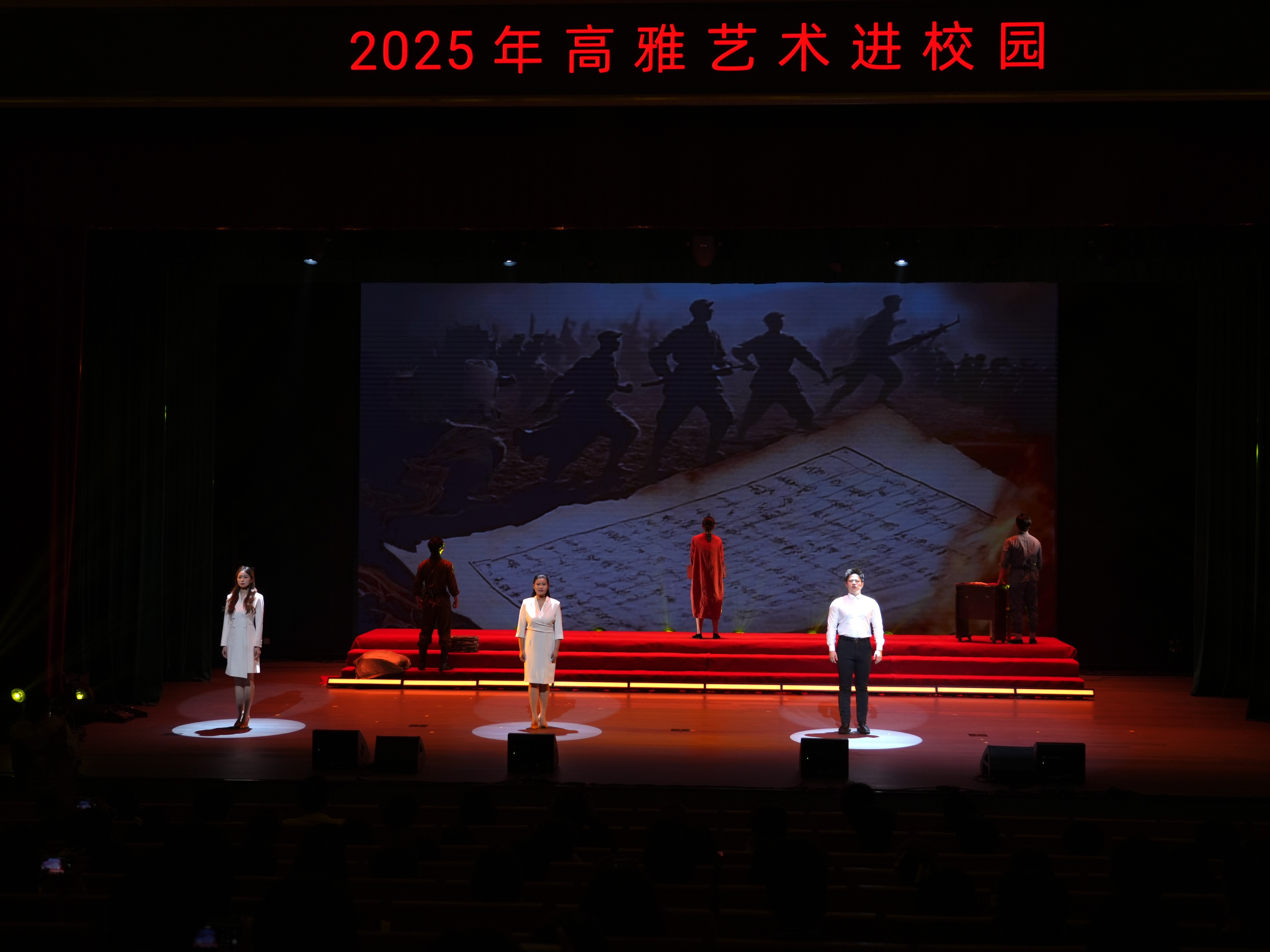 青山綠水是華夏大地的生態底色,真摯情感則是人們內心的精神綠洲。戲劇小品《關于昨天的意見》以細膩敘事,展現老一輩人刻骨銘心的愛情,引發師生對時光與情感的深度思索;朗誦《傾聽綠水青山的訴說》引領師生步入自然秘境,沉浸式飽覽生態本真之美,《父母之河》則深情歌頌黃河博大壯美,讓大家在聲音中感受母親河的磅礴氣勢與深厚底蘊。