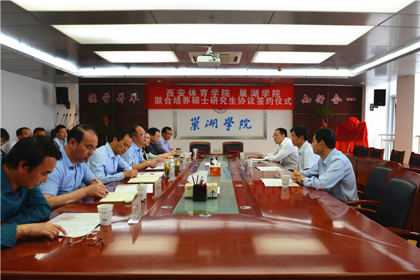 5月13日上午,巢湖學院與西安體育學院聯合培養碩士研究生協議簽約儀式在校第一會議室舉行。西安體育學院副校長劉新民、研究生部主任盧耿華,校長祝家貴、副校長朱定秀出席簽約儀式。儀式由副校長朱定秀主持。