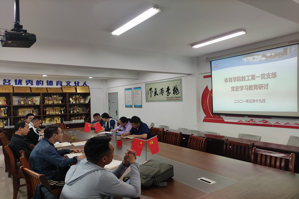 為迎接中國(guó)共產(chǎn)黨成立100周年,深入推進(jìn)黨史學(xué)習(xí)教育,體育學(xué)院第一黨支部于2021年5月20日下午15:00開(kāi)展了黨史學(xué)習(xí)教育研討會(huì),會(huì)議由黨支部書(shū)記黃壽軍主持召開(kāi),全體支部成員參會(huì)。