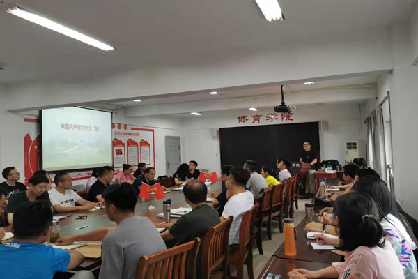 為深入學習貫徹習近平總書記在黨史學習教育動員大會上的重要講話精神,按照校黨委關于開展黨史學習教育專題宣講的工作要求,6月16日下午,體育學院開展黨史學習教育宣講活動,學院黨委書記芮德武主持,黨史學習教育專題宣講由學工部輔導員宣講團成員、體育學院學生第一黨支部書記、兼職組織員陳榮光進行宣講,體育學院全體教工參加。