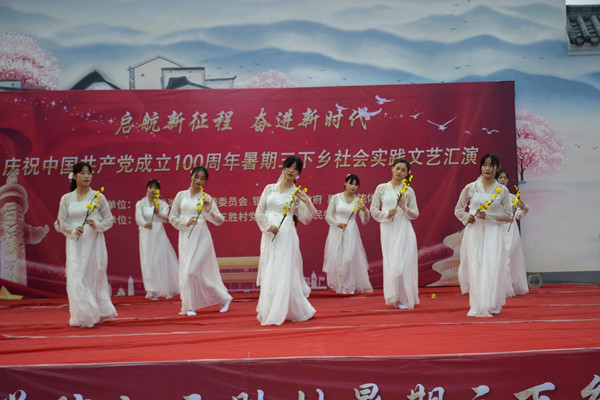 大學生文化藝術服務團用豐富多彩的文藝演出在促進高雅藝術的大眾化傳播、助力美好鄉村建設中貢獻青年大學生的磅礴力量。體育學院將更深入做好青年教育引導工作,充分發揮“黨有號召,團有行動”的光榮傳統,增強團隊的凝聚力戰斗力,為黨為國培養更多的“只爭朝夕,不負韶華”的新時代有為青年。(文/杜銳 圖/傅偉康 審/芮德武)