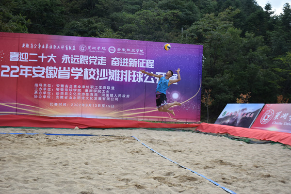 9月18日上午,由安徽省企事業(yè)單位職工體育聯(lián)盟指導(dǎo),安徽排球?qū)W院、巢湖學(xué)院工會(huì)聯(lián)合主辦,岳西縣文化旅游體育局、河圖鎮(zhèn)人民政府承辦,安徽省山水明堂文化發(fā)展有限公司協(xié)辦的2022年安徽省學(xué)校沙灘排球公開(kāi)賽在安徽省岳西縣圓滿(mǎn)落幕。巢湖學(xué)院黨委副書(shū)記、院長(zhǎng)張莉,安徽省氣排球協(xié)會(huì)秘書(shū)長(zhǎng)、安徽省體育館館長(zhǎng)張路,安徽省企事業(yè)單位職工體育聯(lián)盟副主席、宿州學(xué)院體育學(xué)院黨委書(shū)記李高,安徽省企事業(yè)單位職工體育聯(lián)盟副主席、蚌埠醫(yī)學(xué)院工會(huì)副主席何文,巢湖學(xué)院體育學(xué)院黨委組織員芮德武、巢湖學(xué)院工會(huì)副主席郭鳳英、比賽裁判長(zhǎng)徽商職業(yè)學(xué)院陳震宇等出席閉幕儀式并為獲獎(jiǎng)運(yùn)動(dòng)隊(duì)頒獎(jiǎng)。閉幕式由安徽省企事業(yè)單位職工體育聯(lián)盟秘書(shū)長(zhǎng)、安徽排球?qū)W院副院長(zhǎng)鐘翔主持。