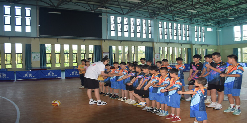 團隊先與當地老師進行簡單交流,了解學生基本情況,檢查活動場地是否有安全隱患,并將課堂上所需器械放在相應位置。排球體驗課上,團隊派出巢湖學院排球校隊成員作為此次排球與少兒體適能體驗實踐課的主要老師,其余團隊成員輔助教學。在課前熱身游戲的鋪墊下,學生們都展現出對排球運動的濃厚興趣。課程中,團隊成員將游戲與教學內容相結合,向小朋友簡單介紹了排球的起源,通過動作示范教小朋友排球基礎技術動作——正面雙手顛球,并手把手指導小朋友掌握正確姿勢,及時指正小朋友在互顛排球時的錯誤,一對一安排小朋友反復練習,課堂氛圍十分活躍。羽毛球體驗課上,團隊成員向小朋友說明了羽毛球比賽的基礎規則,并現場演示羽毛球握拍方法及正手發高遠球和網前球,通過兩兩組隊來進行簡單羽毛球的對打。小朋友興致都很高,體驗課結束后,團隊向這些一至三年級的學生們宣傳了防溺水安全教育知識,并發放預防溺水安全知識須知宣傳冊,與小朋友一同合影留念。