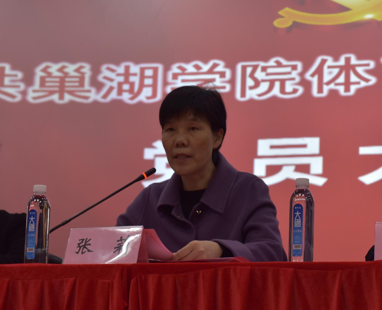 11月15日,中共巢湖學院體育學院委員會換屆選舉黨員大會在博學樓模擬導游室隆重召開。校黨委副書記、校長張莉出席大會并指導換屆選舉工作。大會由體育學院黨委副書記、紀委書記朱春花主持,學院全體師生黨員參加會議。