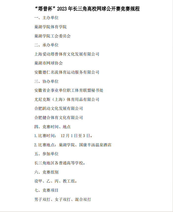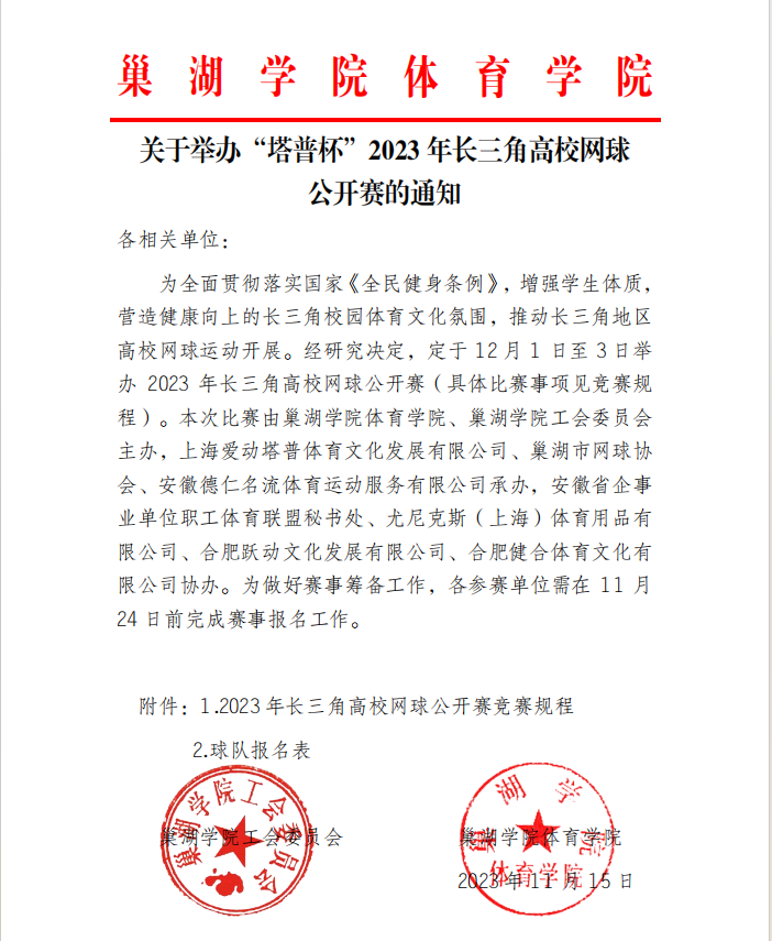 關于舉辦“塔普杯”2023年長三角高校網球公開賽的通知.doc