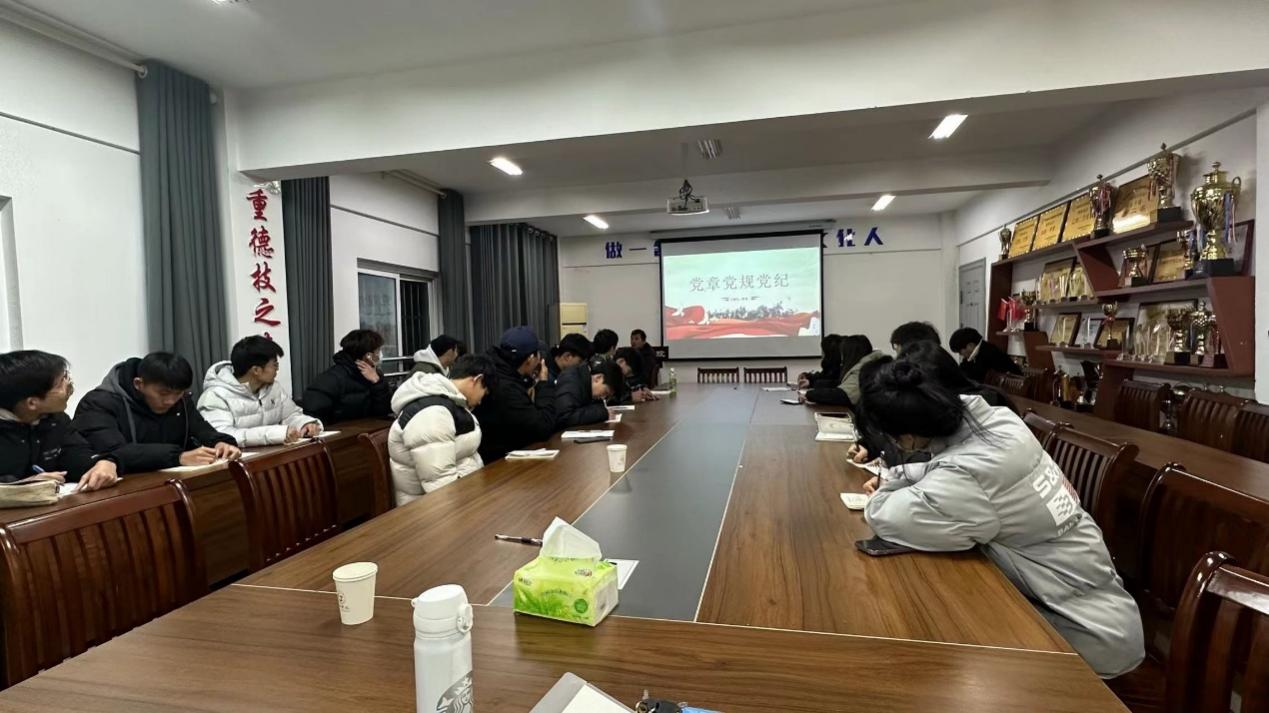 為深入開展學習貫徹習近平新時代中國特色社會主義思想主題教育,端正入黨動機,認真把好黨員發展入口關,切實提高入黨積極分子思想覺悟與黨性修養,確保黨員發展質量,2023年12月12日,在體育學院會議室進行第32期入黨積極分子培訓班暨黨課第9講。由學院學生第三黨支部書記許齊為入黨積極分子們上了一堂“學習黨章黨紀黨規”的專題黨課。第三十二期入黨積極分子培訓班全體學員參加本次黨課培訓。