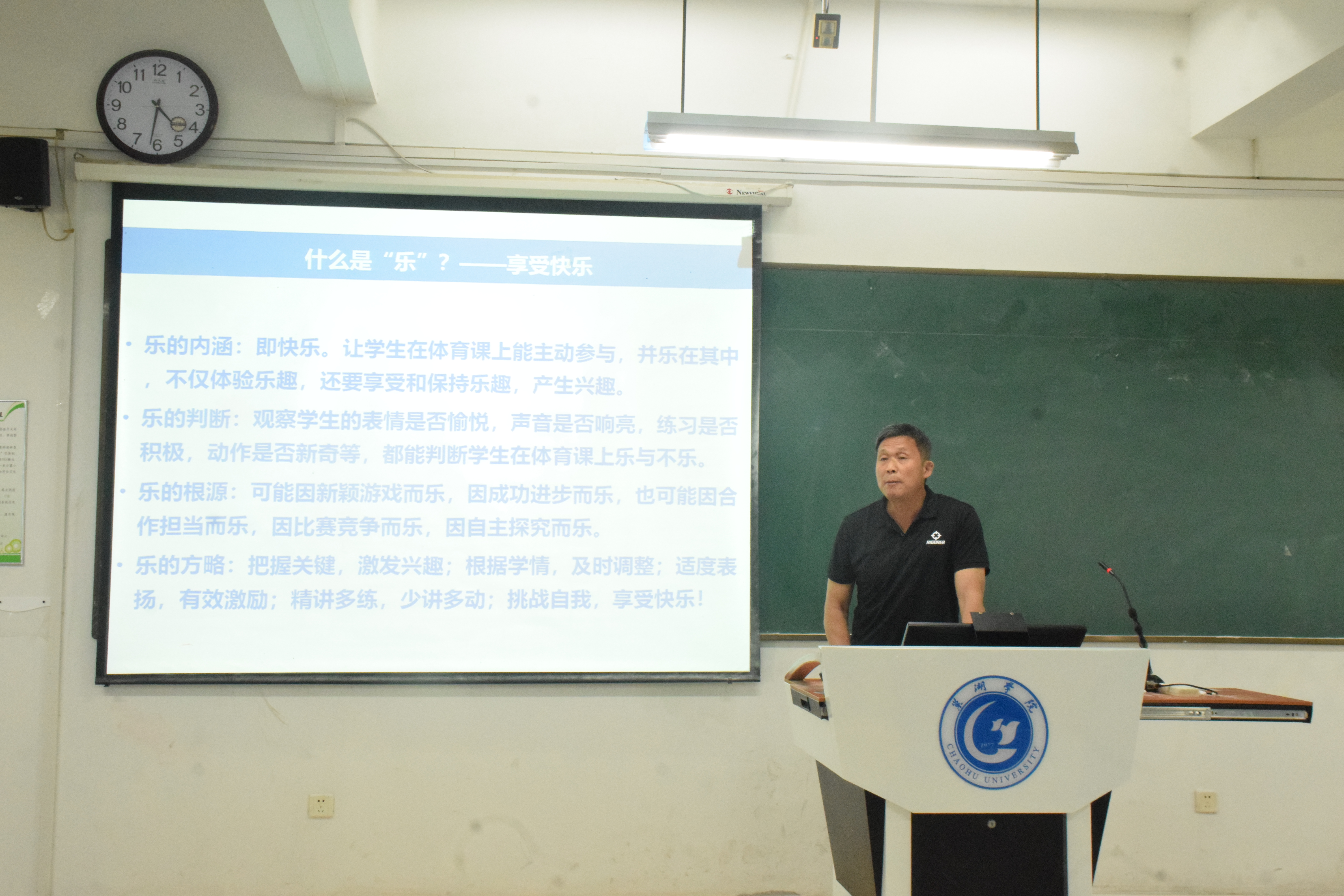 為推進(jìn)高校與中學(xué)協(xié)同育人機(jī)制構(gòu)建,落實(shí)體育教育專業(yè)專業(yè)人才培養(yǎng)目標(biāo),2024年5月8日下午14:00,在慎思樓北103教室體育學(xué)院組織開(kāi)展中學(xué)課程與教學(xué)系列講座活動(dòng),體育教育訓(xùn)練系執(zhí)行主任周雪華主持本次活動(dòng),2021級(jí)體育教育專業(yè)184名學(xué)生參與活動(dòng)。