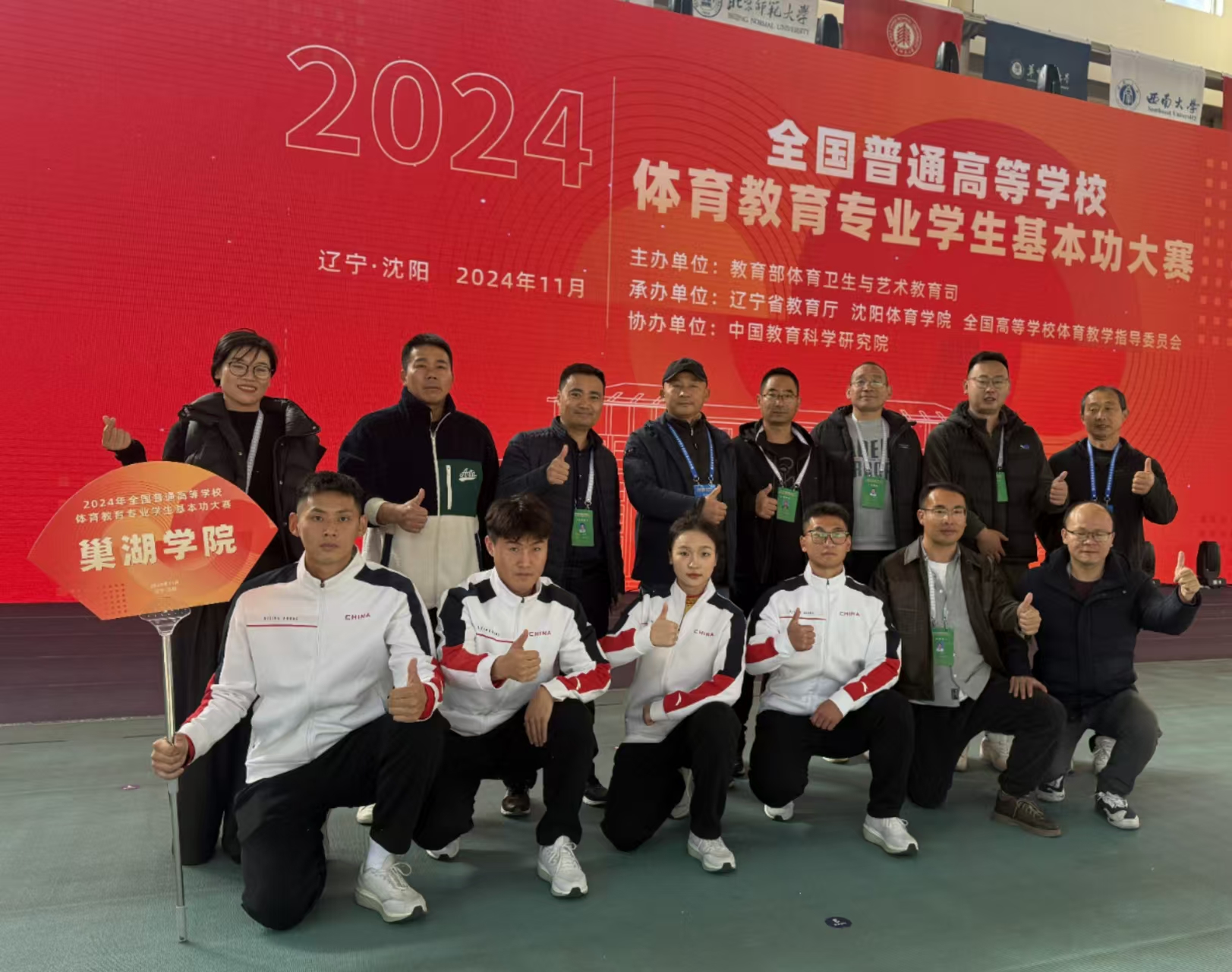 11月11日至15日,由教育部體育衛生與藝術教育司主辦,遼寧省教育廳、沈陽體育學院、全國高等學校體育教學指導委員會承辦的“2024年全國普通高等學校體育教育專業學生基本功大賽”在沈陽體育學院隆重舉行,共有北京師范大學、華東師范大學、華中師范大學、華南師范大學、東北師范大學、北京體育大學、上海體育大學、首都體育學院、天津體育學院、西安體育學院、武漢體育學院、廣州體育學院等87所高校348名體育教育專業本科學生參加比賽。巢湖學院在大賽中榮獲一等獎2項、二等獎2項、三等獎4項,團體總分二等獎(第2名)。