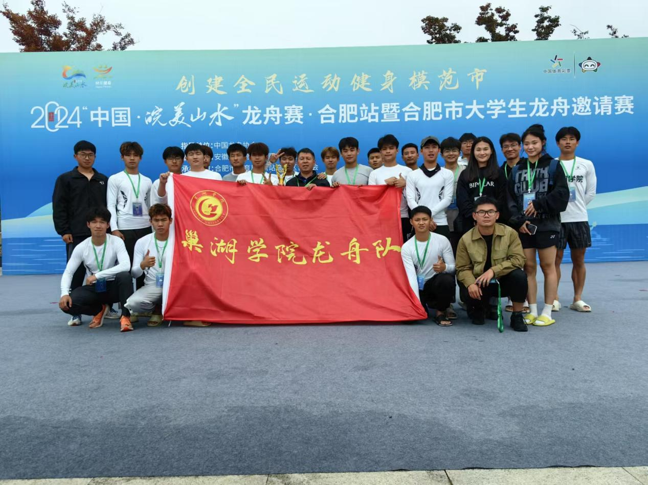 2024年10月13日,由安徽省體育局、合肥市人民政府共同主辦的“2024 年中國·皖美山水龍舟賽·合肥站暨 2024 年合肥市大學生龍舟邀請賽”在合肥市新站區少荃湖成功舉行。共有中國科學技術大學、合肥工業大學、安徽建筑大學等18所高校龍舟隊參加比賽,巢湖學院龍舟隊經過奮力拼搏,榮獲500米直道賽三等獎。