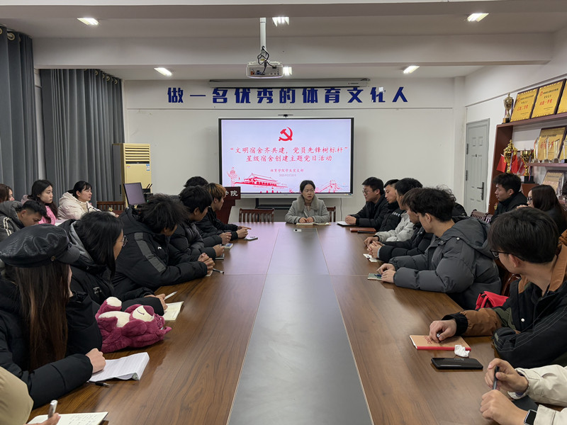 為充分發揮學生黨員的先鋒模范作用和黨支部的戰斗堡壘作用,進一步做好黨員密切聯系群眾工作,2月25日中午,體育學院在學院會議室開展“文明宿舍齊共建 黨員先鋒樹標桿”星級宿舍創建主題黨日活動。此次活動由學生第一黨支部副書記田中正主持,學院黨委副書記、紀委書記朱春花,組織員張巧生以及全體學生黨員、入黨積極分子參加了此次活動。