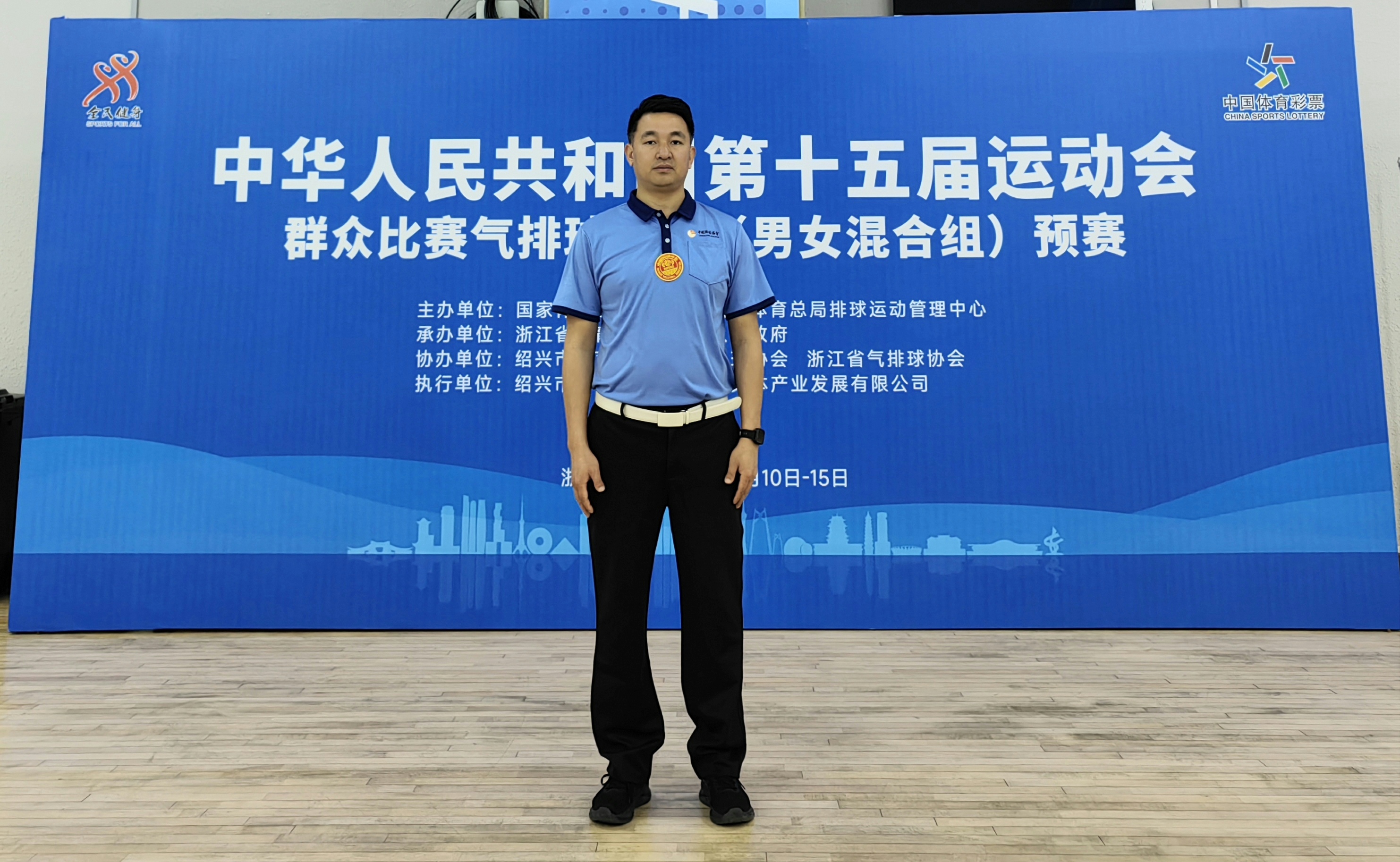 4月10日至14日,中華人民共和國第十五屆運動會群眾比賽氣排球項目(男女混合組)預賽在浙江紹興舉行。本次賽事由國家體育總局群體司和國家體育總局排球運動管理中心主辦,吸引了來自27個省市自治區及行業體協的代表隊,300余名運動員齊聚賽場,角逐全運會決賽入場券。體育學院教師周??▏壹墯馀徘虿门袉T)受國家體育總局排球運動管理中心指派,擔任本次比賽的裁判工作。