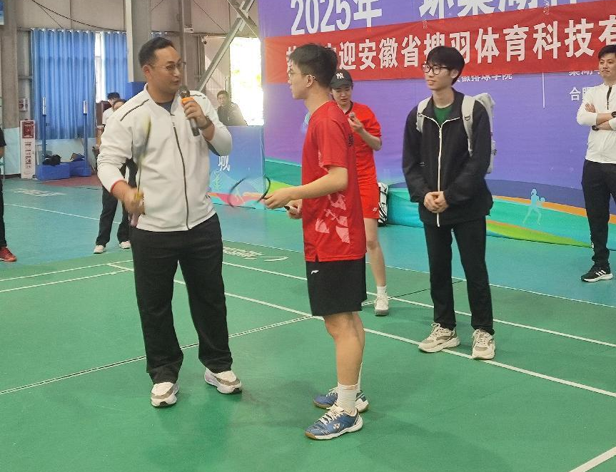 當日下午,羽毛球館內氣氛熱烈。專家們以“精準發力與戰術預判”為主題展開專項教學指導,通過多球訓練、情景模擬和分組對抗三大模塊。在殺球,變線等具體技術教學中,靈活運用雙語指令與肢體示范,讓抽象技術變得直觀可感。發接、接發球等戰術教學環節則通過情景展現,引導學生洞察對手習慣性球路。現場高潮迭起,當專選班學生李長棟成功完成一組接發變線+連貫劈殺動作時,全場響起熱烈掌聲。
