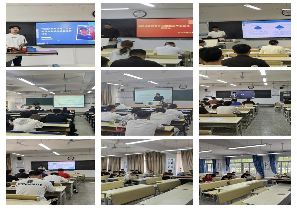答辯過程中,學生們圍繞論文選題背景、研究方法、結果分析、核心結論等內容進行闡述,通過PPT 展示研究成果。答辯評委從選題科學性、邏輯嚴謹性、實踐可行性等維度逐一點評,提出針對性修改建議。為體現專業培養方向,體育教育專業學生的研究選題涵蓋了體育教學內容、青少年體力活動等多個熱點領域,充分展現了專業性。社會體育指導與管理專業學生則圍繞休閑體育活動組織管理、健康促進與提升等內容展開研究,體現了該專業在社會體育領域的應用價值。