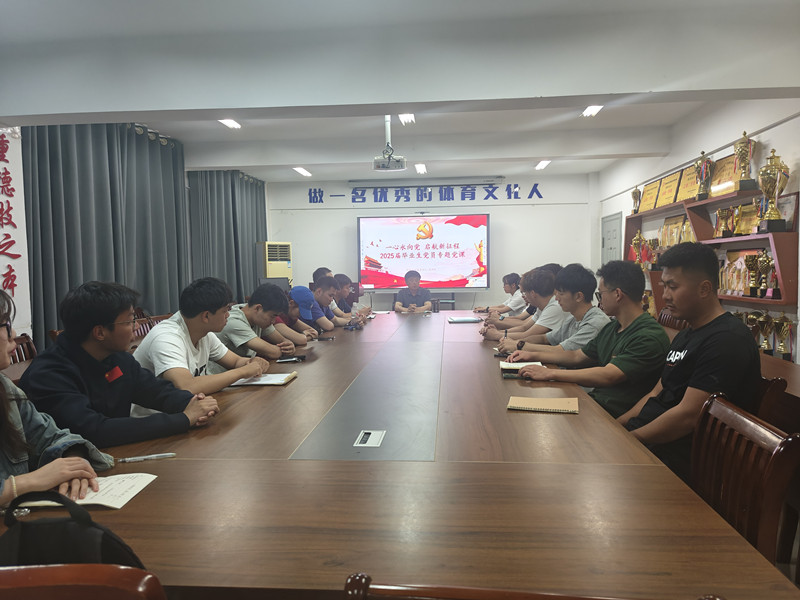 為深入學習貫徹習近平新時代中國特色社會主義思想,強化畢業生黨員黨性教育,激勵青年黨員在新征程中勇擔使命,5月27日中午12:30,體育學院黨委在學院會議室召開“一心永向黨 啟航新征程”2025屆畢業生黨員專題黨課。本次黨課由學院黨委書記宋明友主講,支部書記張巧生、田中正及全體畢業班黨員參會。