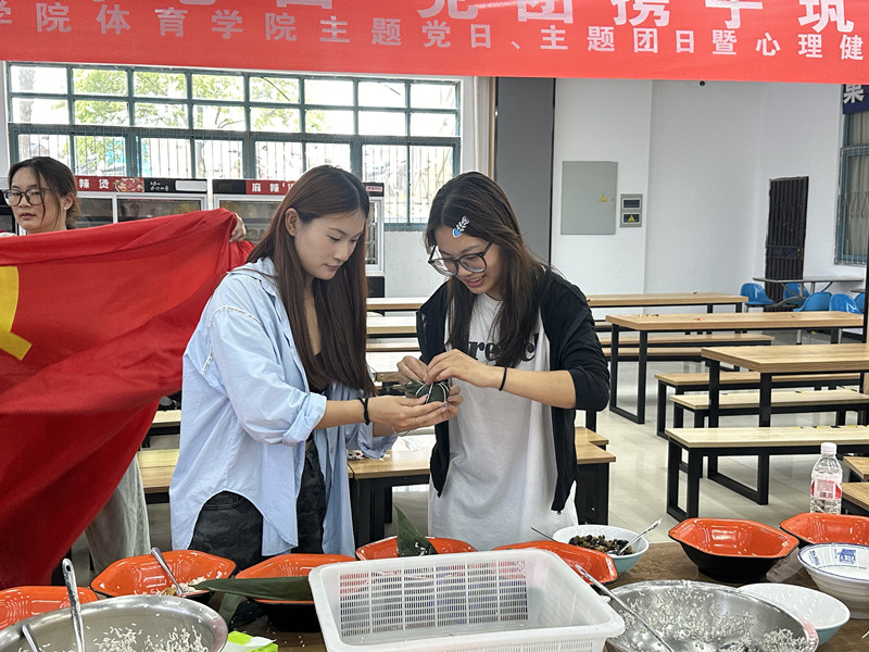 為傳承中華優秀傳統文化,加強學生黨員、團員思想政治教育,增強黨團建設,關注學生心理健康,5月29日,體育學院在第二食堂開展了“粽葉飄香潤心田 黨團攜手筑心橋”心理健康月主題教育活動。體育學院輔導員田中正、學生黨支部全體黨員、部分團員代表參加活動,共同度過了一段充實而有意義的時光。