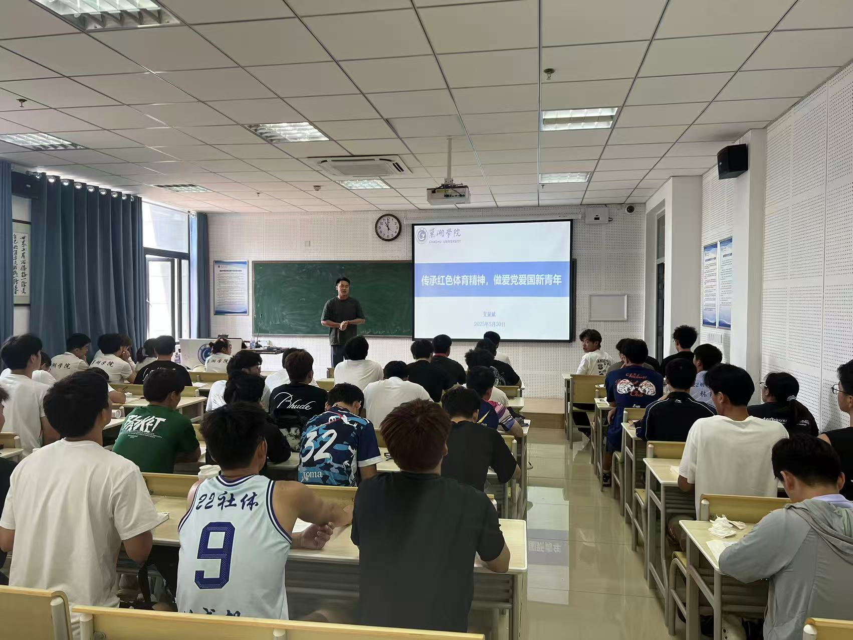 為深入學習貫徹大精神,弘揚愛黨愛國優良傳統,增強新時代青年大學生的責任感與使命感,5月23日上午,巢湖學院體育學院副教授艾顯斌在崇學樓中303開展題為《傳承紅色體育精神,黨愛國新青年》的專題講座,體育學院2022級社會體育指導與管理專業全體學生參加學習。