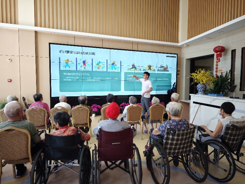 巢湖九久夕陽(yáng)紅護(hù)理院的活動(dòng)中,隊(duì)長(zhǎng)李興凡借助ppt系統(tǒng)講解老年人的健康活動(dòng)與飲食知識(shí),強(qiáng)調(diào)運(yùn)動(dòng)與休息的平衡,推薦早晨散步、太極及傍晚伸展、瑜伽等運(yùn)動(dòng),建議每晚7—8小時(shí)睡眠與適當(dāng)午休,且每活動(dòng)45分鐘休息15分鐘;飲食上則倡導(dǎo)均衡營(yíng)養(yǎng),多攝入蔬菜水果、優(yōu)質(zhì)蛋白,限制“三高”及刺激性食物。講解過(guò)程中,李興凡積極與老人互動(dòng),調(diào)動(dòng)參與熱情。