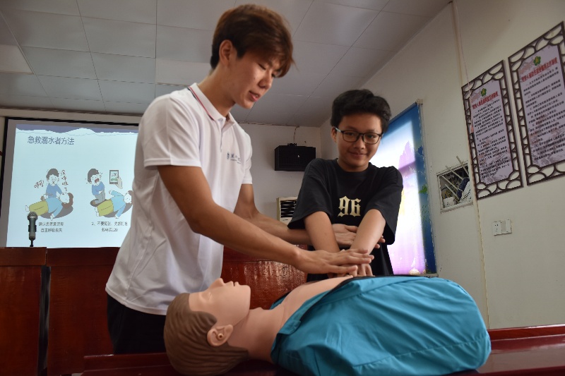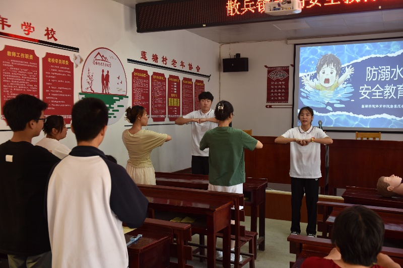 在散兵鎮(zhèn)蓮塘村老年協(xié)會(huì),團(tuán)隊(duì)圍繞急救知識(shí)與科學(xué)運(yùn)動(dòng)展開(kāi)活動(dòng)。團(tuán)隊(duì)成員高圣杰以真實(shí)溺水案例切入,詳解危險(xiǎn)水域識(shí)別、防溺水“六不準(zhǔn)”原則及溺水自救與救援方法,并借助人體模型演示心肺復(fù)蘇操作,現(xiàn)場(chǎng)指導(dǎo)村民練習(xí)。針對(duì)食管異物梗阻問(wèn)題,成員崔彥熙用“剪刀石頭布法則”通俗講解海姆立克急救法,通過(guò)口訣與動(dòng)作演示,讓村民快速掌握救助他人與自救技巧。此外,考慮到久坐導(dǎo)致的身體勞損,成員毛雪梅設(shè)計(jì)了涵蓋腕肘、頭部、胸背、下肢等部位的特色健身操,耐心指導(dǎo)村民練習(xí)?;顒?dòng)尾聲,團(tuán)隊(duì)還考察了老年協(xié)會(huì)的適老設(shè)施,并發(fā)放針對(duì)常見(jiàn)病癥的定制化《運(yùn)動(dòng)處方》。
