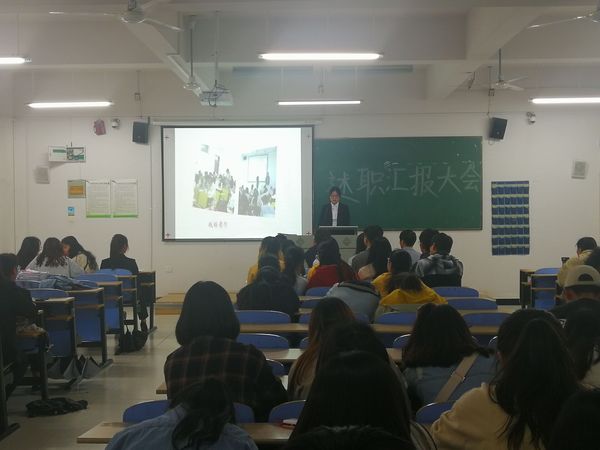 為總結各班團支部的工作情況,加強基層團支部建設,文教學院團總支于2019年3月27日在慎思樓中102教室開展團支書述職匯報大會。此次大會由團總支負責人晁天彩老師、班級輔導員、學生會代表、學生代表擔任評委,各班團支書以及觀賽人員準時到場參加。
