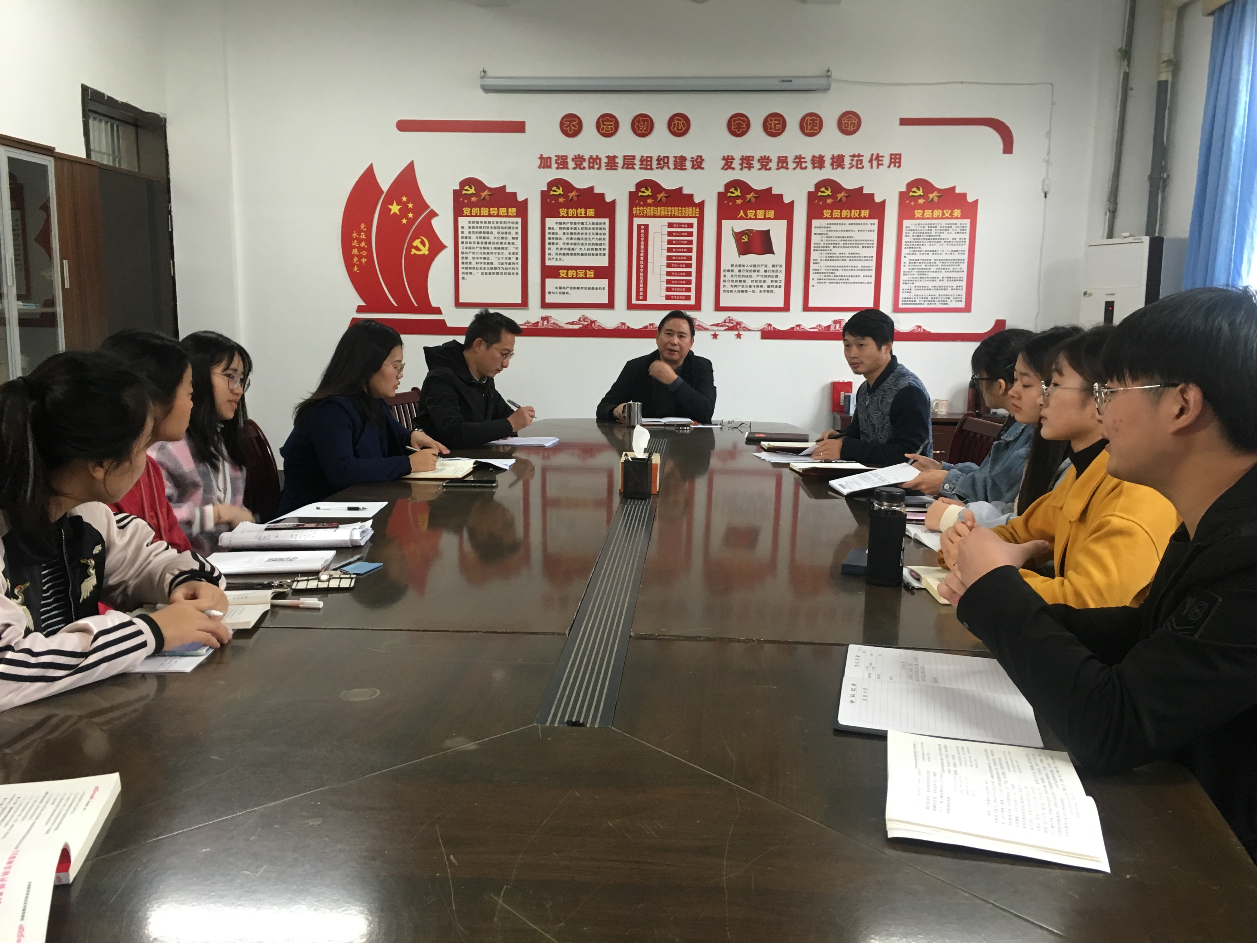 為不斷完善基層黨組織黨員發展及管理,強化黨員意識。文教學院于2019年10月29日黨員活動室開展主題教育專題調研座談會。各學生支部書記、學生黨員參加。會議由程生風主持。