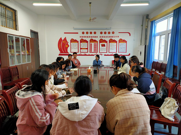 2019年11月20日中午12點,文教學院學生第四支部在敏行樓二樓會議室召開支部大會,支部大會主要討論發展入黨積極分子的問題,全體學生黨員參加了會議,會議由支部書記晁天彩主持。