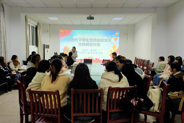 12月1日晚,文教學(xué)院黨委委員、學(xué)生第四支部書記晁天彩以“新時(shí)代學(xué)生黨員如何發(fā)揮先鋒模范作用”為主題開(kāi)展第十期黨校第二階段培訓(xùn)工作,各支部發(fā)展對(duì)象與即將轉(zhuǎn)正的預(yù)備黨員積極參加。