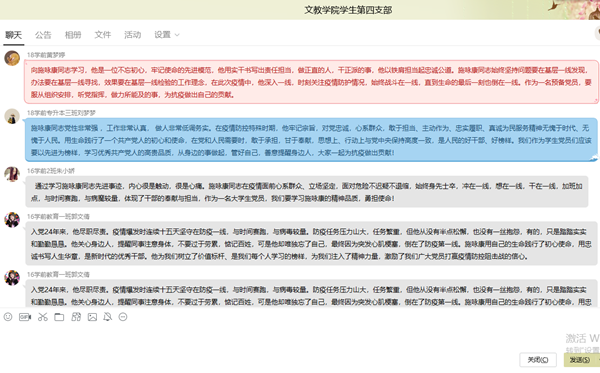 晁天彩強(qiáng)調(diào)支部全體黨員要學(xué)習(xí)施詠康同志信念堅定、對黨忠誠的政治品格;學(xué)習(xí)他牢記宗旨、心系群眾的為民情懷;學(xué)習(xí)他恪盡職守、舍身忘我的責(zé)任擔(dān)當(dāng);學(xué)習(xí)他勤勉敬業(yè)、求真務(wù)實的優(yōu)良作風(fēng)。她要求支部各成員要發(fā)揮自身優(yōu)勢,積極參加各類志愿活動,結(jié)合自身專業(yè)及年級情況做一些力所能及的事情,如線上分享考研經(jīng)驗,幫扶困難學(xué)生等,真正發(fā)揮為他人服務(wù)的精神。支部成員會后也自發(fā)將自己學(xué)習(xí)的所感所想在支部群里進(jìn)行了分享和討論。