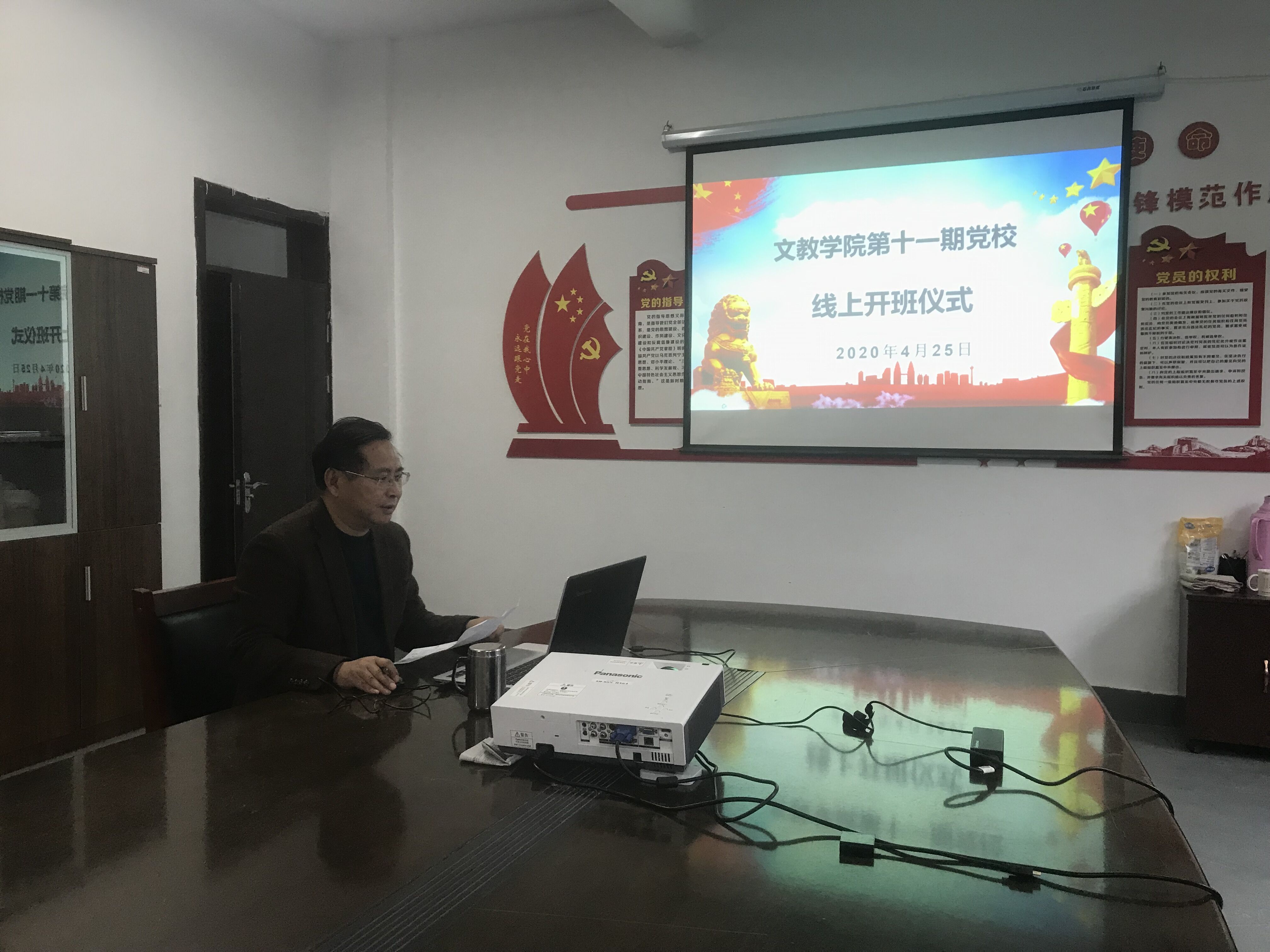 為進(jìn)一步提高入黨積極分子的思想政治素質(zhì)和理論水平,貫徹落實(shí)中國(guó)共產(chǎn)黨發(fā)展黨員工作相關(guān)規(guī)定,加強(qiáng)組織培訓(xùn)工作。根據(jù)學(xué)院黨委年度工作安排,4月25日中午,文教學(xué)院第十一期業(yè)余黨校線上開班儀式在學(xué)院黨員活動(dòng)室順利舉辦。疫情時(shí)期,本期黨校將采用網(wǎng)絡(luò)授課、視頻教學(xué)、線下自學(xué)相結(jié)合的教學(xué)方法,主要圍繞馬克思基本理論、習(xí)近平新時(shí)代中國(guó)特色社會(huì)主義思想、黨的知識(shí)和理論、形勢(shì)與政策等方面分4個(gè)專題展開,對(duì)前期推優(yōu)選拔出的66名積極分子及24名發(fā)展對(duì)象進(jìn)行集中培訓(xùn)。