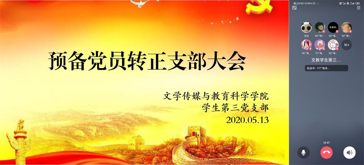 5月13日晚,文教學院學生第三黨支部召開支部大會,討論支部預備黨員的轉正問題,及“三個以案”警示教育專題學習。會議由支部書記沈潔主持,全體黨員參會。