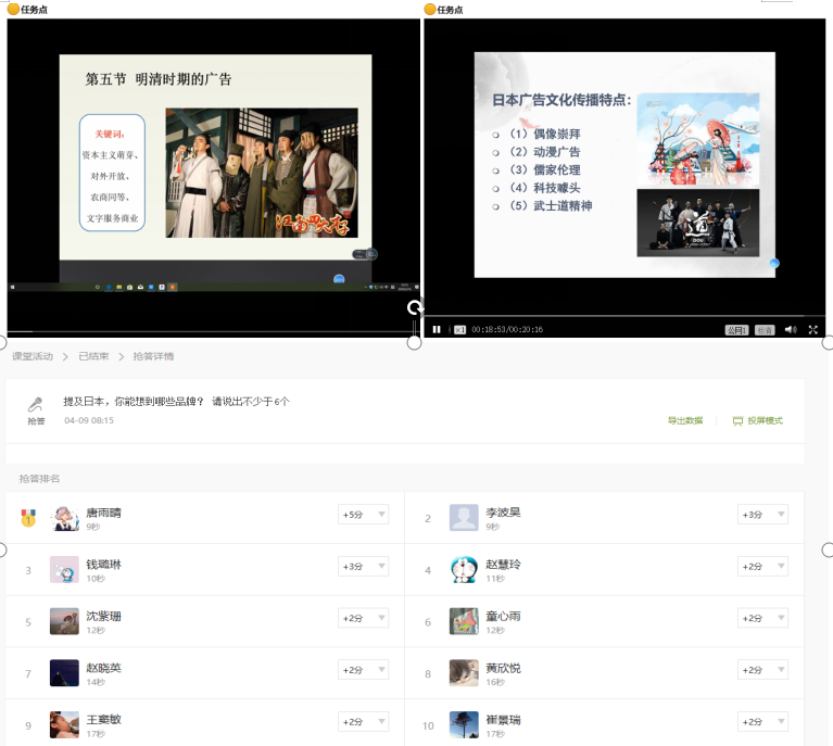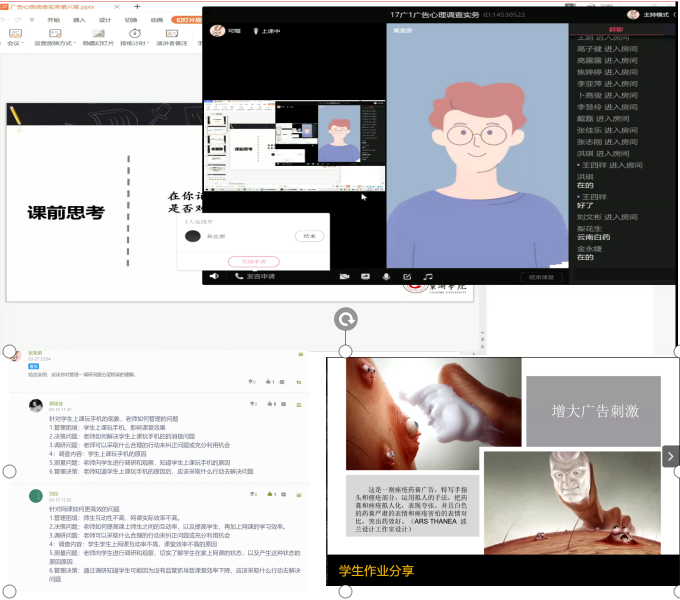 另外,田淼琪老師則強(qiáng)調(diào)了線上授課過程中及時(shí)更新案例的重要性,她在授課過程中將當(dāng)下熱點(diǎn)和最新話題作為案例來讓學(xué)生討論,在提高學(xué)生學(xué)習(xí)興趣的同時(shí)還能夠調(diào)動(dòng)學(xué)生學(xué)習(xí)的積極性。
