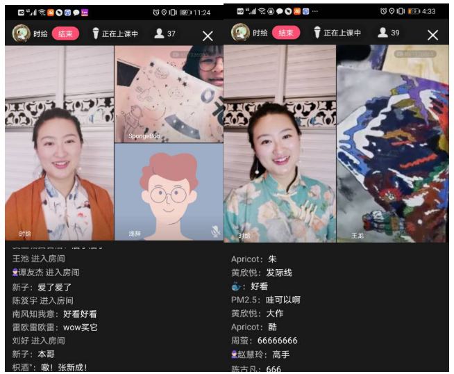 在交流和分享的過程中,老師們普遍認(rèn)為線上教學(xué)中如何增強(qiáng)與學(xué)生的互動(dòng)是決定教學(xué)效果的重要因素。石惠老師結(jié)合本學(xué)期《實(shí)用美術(shù)》線上授課的實(shí)際情況,談到在直播中讓學(xué)生分組展示作業(yè),未展示作業(yè)的同學(xué)通過發(fā)送聊天信息對(duì)作業(yè)進(jìn)行評(píng)價(jià)從而來加強(qiáng)同學(xué)之間的互動(dòng)和交流。同時(shí),在讓學(xué)生課后互評(píng)作業(yè),每周評(píng)出最佳作業(yè),并且將其作為平時(shí)成績(jī)的重要依據(jù)。