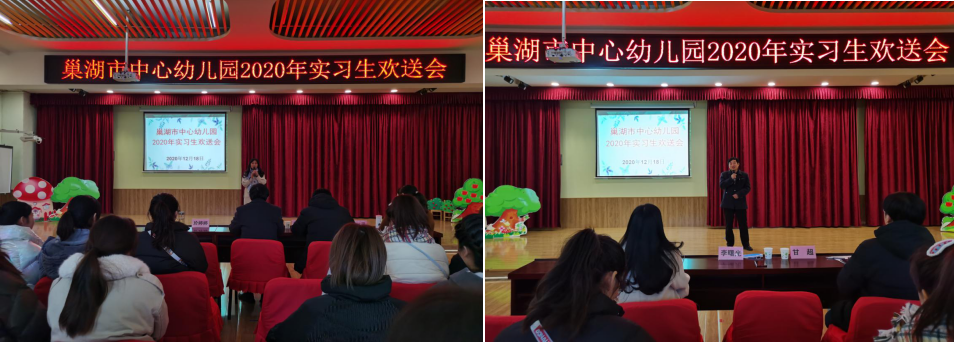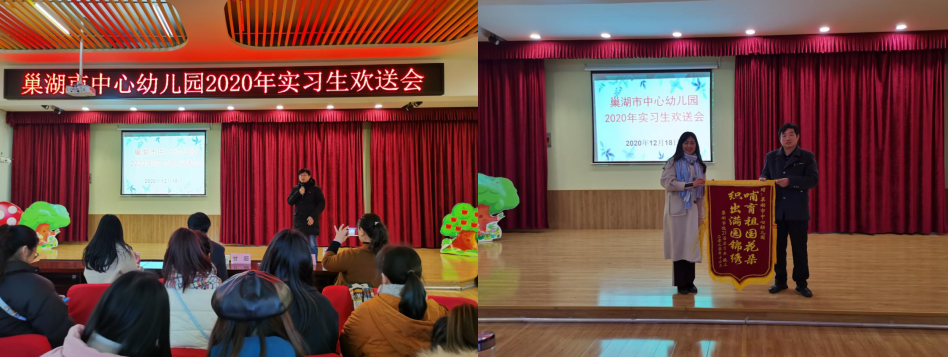 2020年9月16日至2020年12月18日,文教學院17級(本)學前專業29名同學,在巢湖市中心幼兒園開展了為期三個月的教育實習。2020年12月18日,在實習結束之際,巢湖市中心幼兒園舉行了實習歡送會。文教學院副院長李曙光、學前教研室主任甘超、專業帶隊教師張平參加了歡送會,歡送會由巢湖市中心幼兒園梅主任主持。