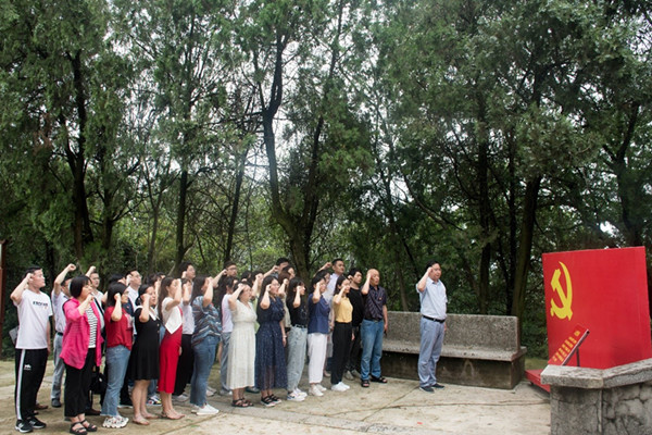 參觀完革命烈士紀念館,全體黨員尋著烈士戰斗的足跡登上西梁山,瞻仰人民英雄紀念碑,緬懷革命英雄的偉大精神。在紀念碑前,分黨委書記朱玉票帶領全體黨員重溫入黨誓詞,錚錚誓言久久回蕩,初心使命矢志不忘。