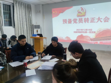 為健全和完善支部組織建設(shè),進(jìn)一步壯大支部黨員隊(duì)伍,2021年12月18日下午17:20,文學(xué)傳媒與教育科學(xué)學(xué)院學(xué)生第一黨支部全體成員于敏行樓會(huì)議室召開(kāi)預(yù)備黨員轉(zhuǎn)正支部會(huì)議暨黨員政治生日。本次會(huì)議由支部書(shū)記曾鵬主持,支部成員準(zhǔn)時(shí)參會(huì)。