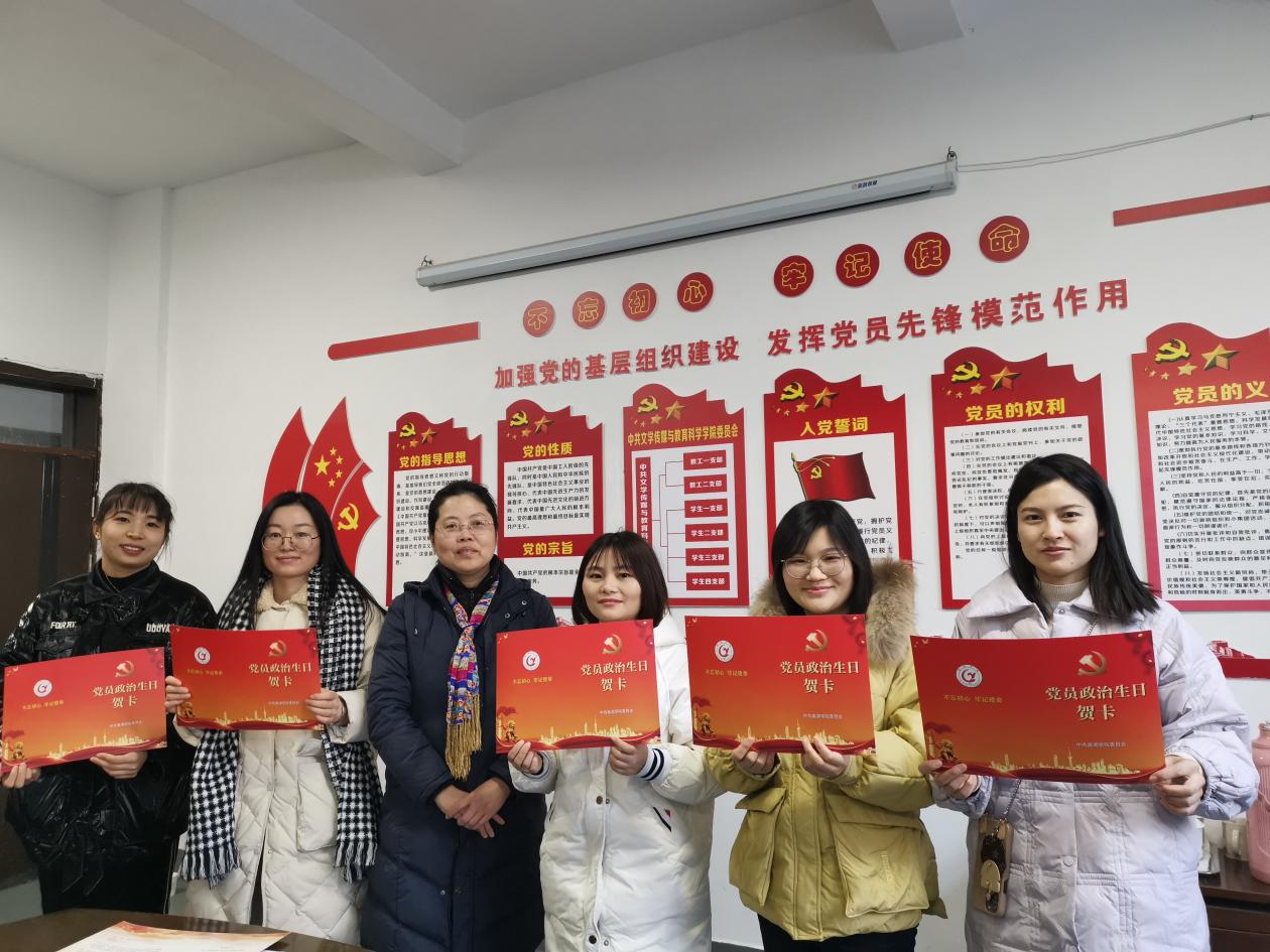活動中,支部書記章杏玲老師為全體黨員送上了精心制作的政治生日賀卡,并帶領大家重溫了入黨誓詞,讓黨員教師感受到來自組織的關懷和溫暖。過政治生日的黨員教師一一分享了成長心得,大家紛紛表示:一張張黨員政治生日賀卡傳遞的不僅僅是溫情與關愛,更包含著期望與責任。