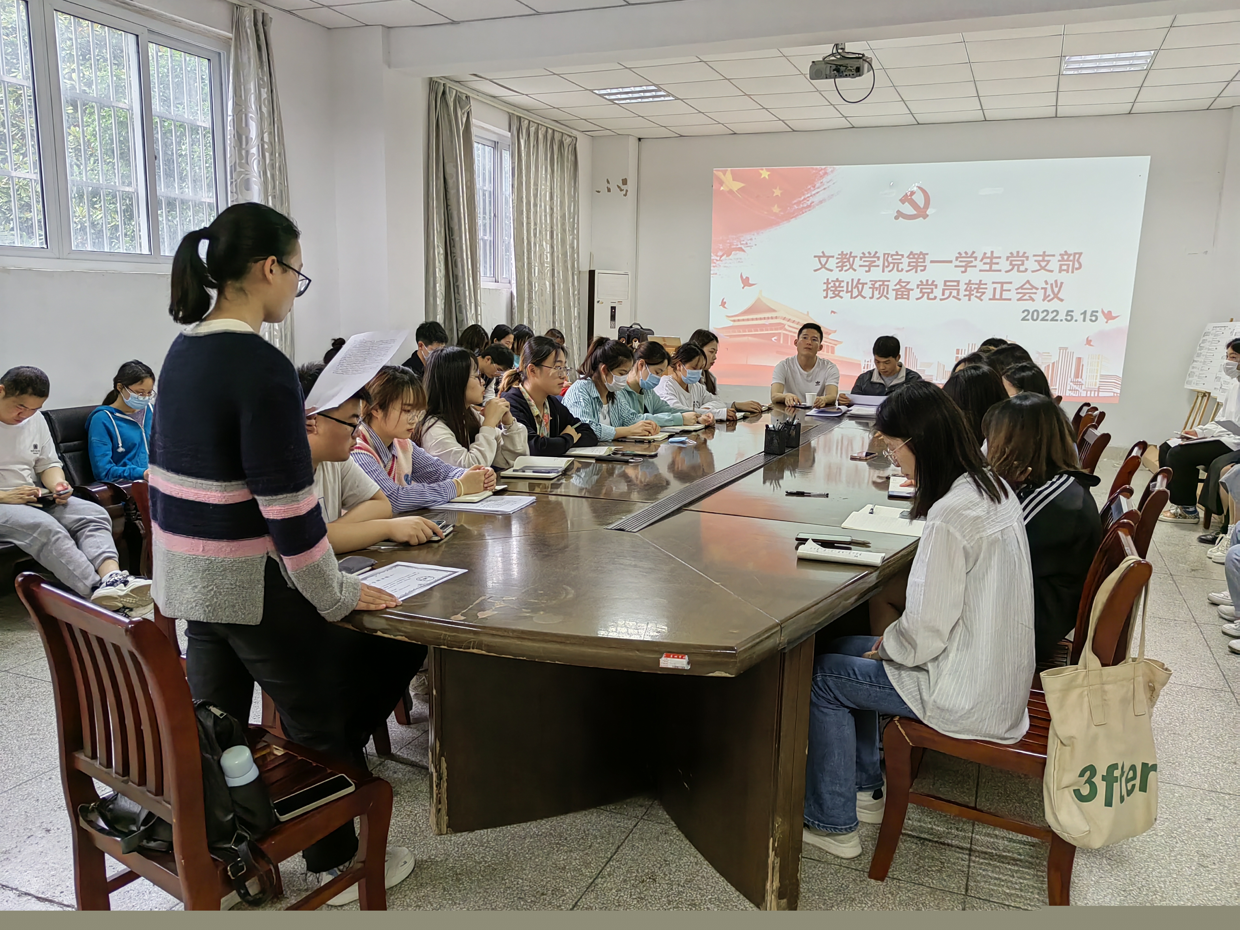 為做好發(fā)展黨員工作,進(jìn)一步加強(qiáng)黨員隊(duì)伍建設(shè),文教學(xué)院第一黨支部于5月15日在敏行樓會(huì)議室召開預(yù)備黨員轉(zhuǎn)正大會(huì)。本次會(huì)議由支部書記曾鵬主持召開,其中正式黨員26人,實(shí)到26人。