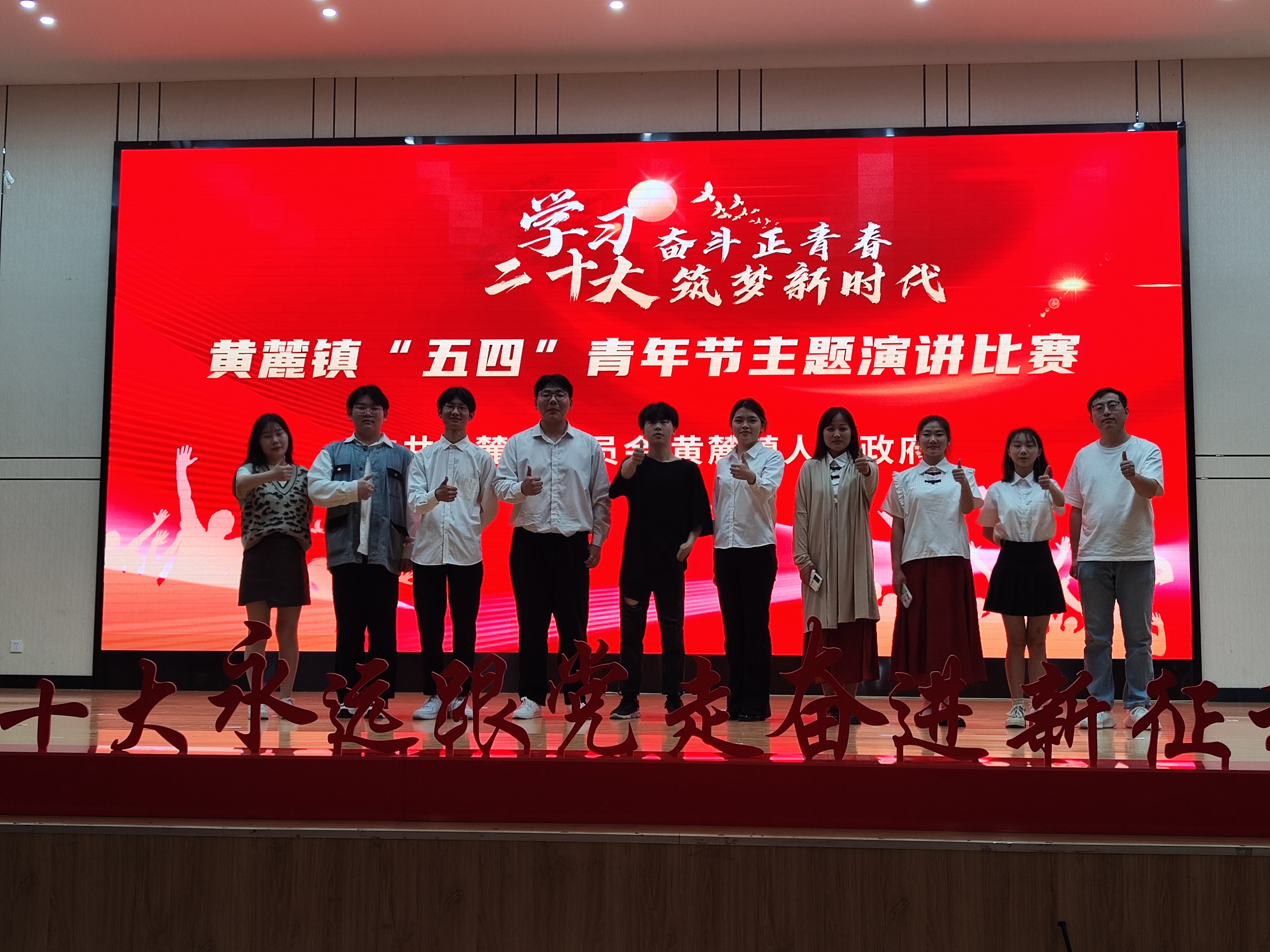 5月4日,黃麓鎮舉辦了“學習二十大 奮斗正青春 筑夢新時代”主題演講比賽,文傳學院受邀參加此項活動的文化表演環節。我院選送的《你們·我們》經典朗誦節目,由院團委副書記劉偌熙指導,分為時空對話、致敬先輩、吾輩自強三大板塊,配以視頻音樂,現場效果震撼,掌聲雷動。