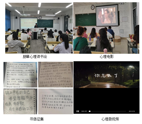 學院組織開展了宿舍心理漫談、觀看心理電影、班級朋輩心理讀書會、“致三年后的自己”書信征集、心理短視頻制作等特色活動。