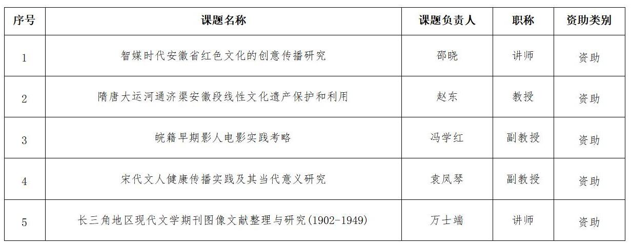 7月19日,安徽省社科聯公布了2022年度安徽省社會科學創新發展研究課題立項名單,文學與傳媒學院邵曉、趙東、馮學紅、袁鳳琴、萬士端等5位老師申報的課題獲批立項,立項數為歷年最高。