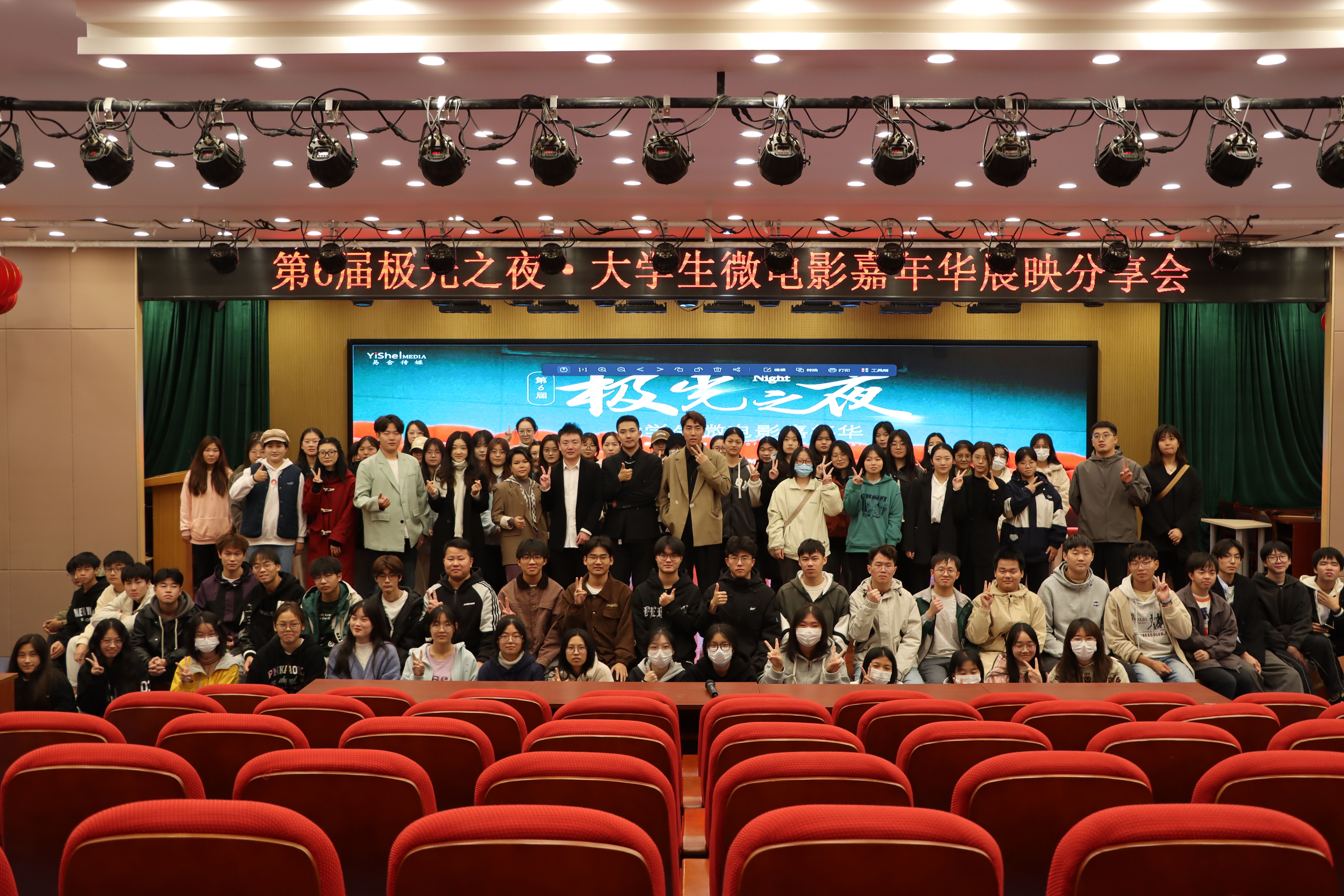 11月11日,第6屆極光之夜·大學生微電影嘉年華優秀作品展映分享活動在巢湖學院拉開帷幕。本次活動由巢湖學院文學與傳媒學院承辦,獲獎團隊代表、新媒體系部分師生參加此次活動。