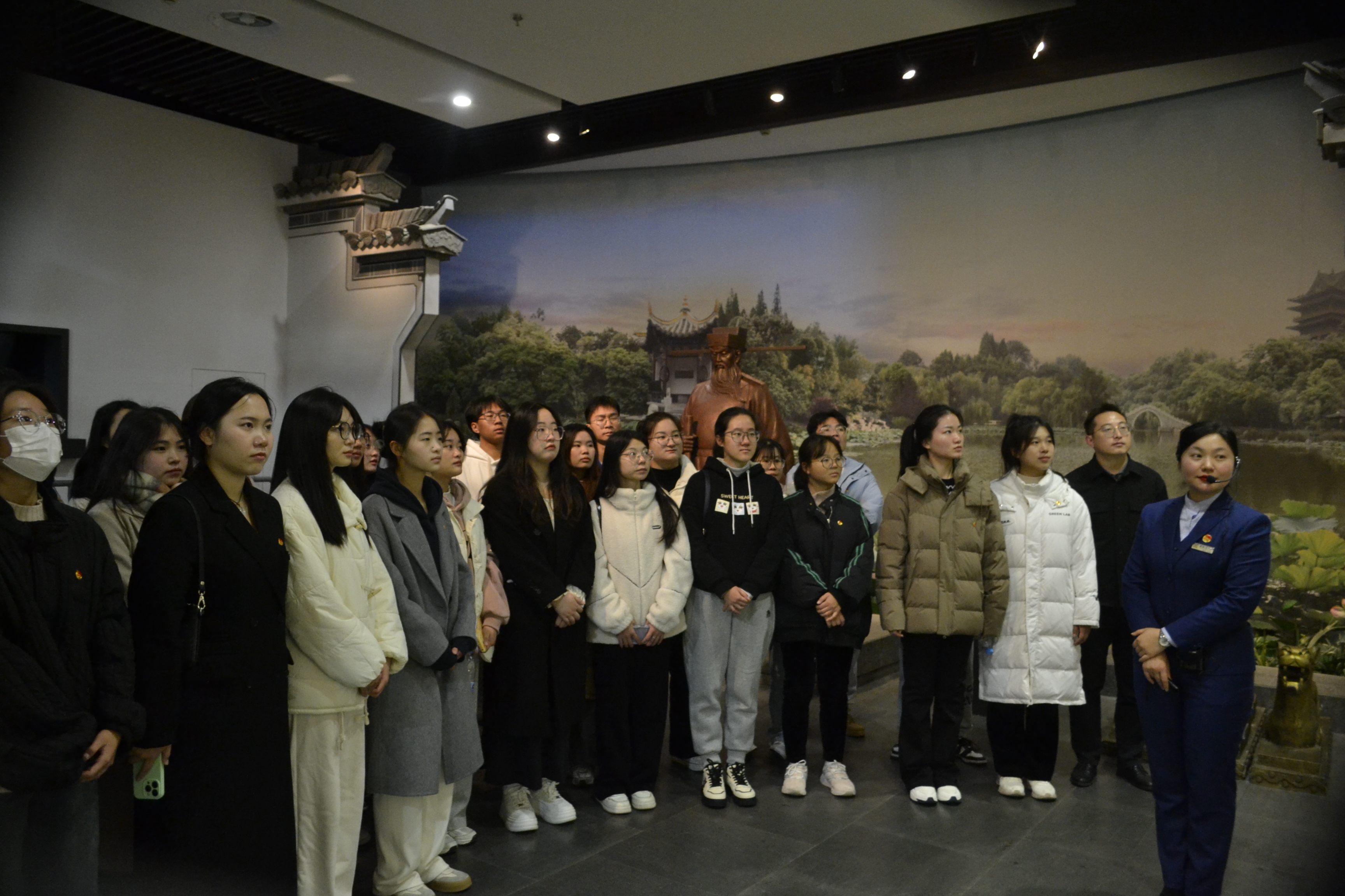 在渡江戰(zhàn)役紀(jì)念館,描繪四百萬(wàn)軍民奮勇向前的壯闊場(chǎng)景展現(xiàn)在眼前,伴隨著講解員的講述,學(xué)員們深入了解了渡江戰(zhàn)役的決策、部署、經(jīng)過和意義,深刻領(lǐng)悟到渡江戰(zhàn)役勝利的偉大意義和中國(guó)共產(chǎn)黨的光輝歷史。走進(jìn)安徽省名人館大廳,講解員從入門處安徽古今名人浮雕開始介紹,帶著同學(xué)們參觀了八個(gè)展廳內(nèi)容涵蓋文化科技等多個(gè)方面,同學(xué)們被安徽悠久深厚的歷史文化所折服。