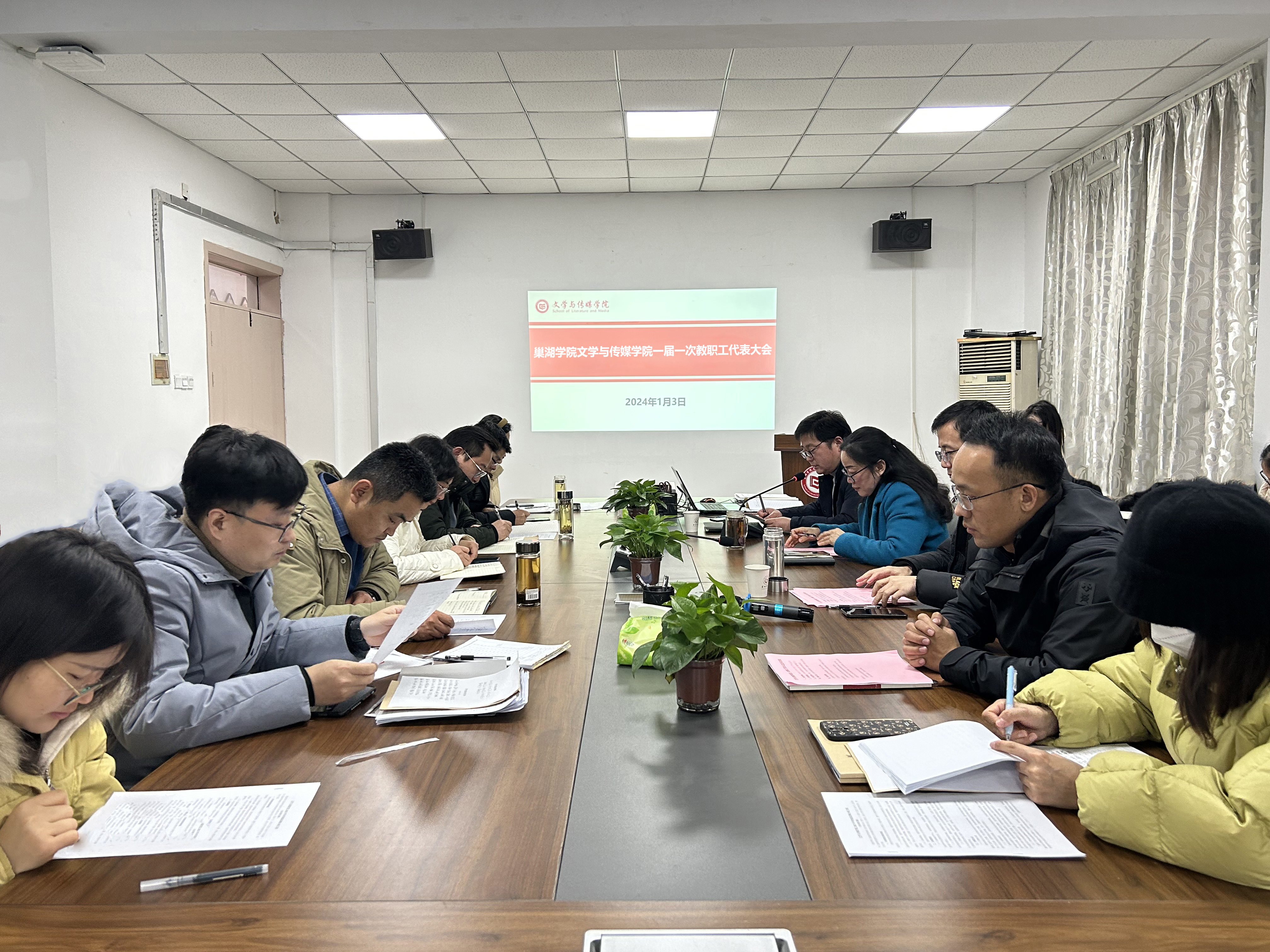 為充分發揮教職工參與學院民主管理和民主監督的權利,調動教職工參與學院改革發展的積極性,1月3日下午,文學與傳媒學院在學院會議室召開一屆一次教職工代表大會。學院黨委書記袁鳳琴、院長彭正生、副書記孫冰、副院長王宇明及學院教師代表參加會議,會議由孫冰主持。