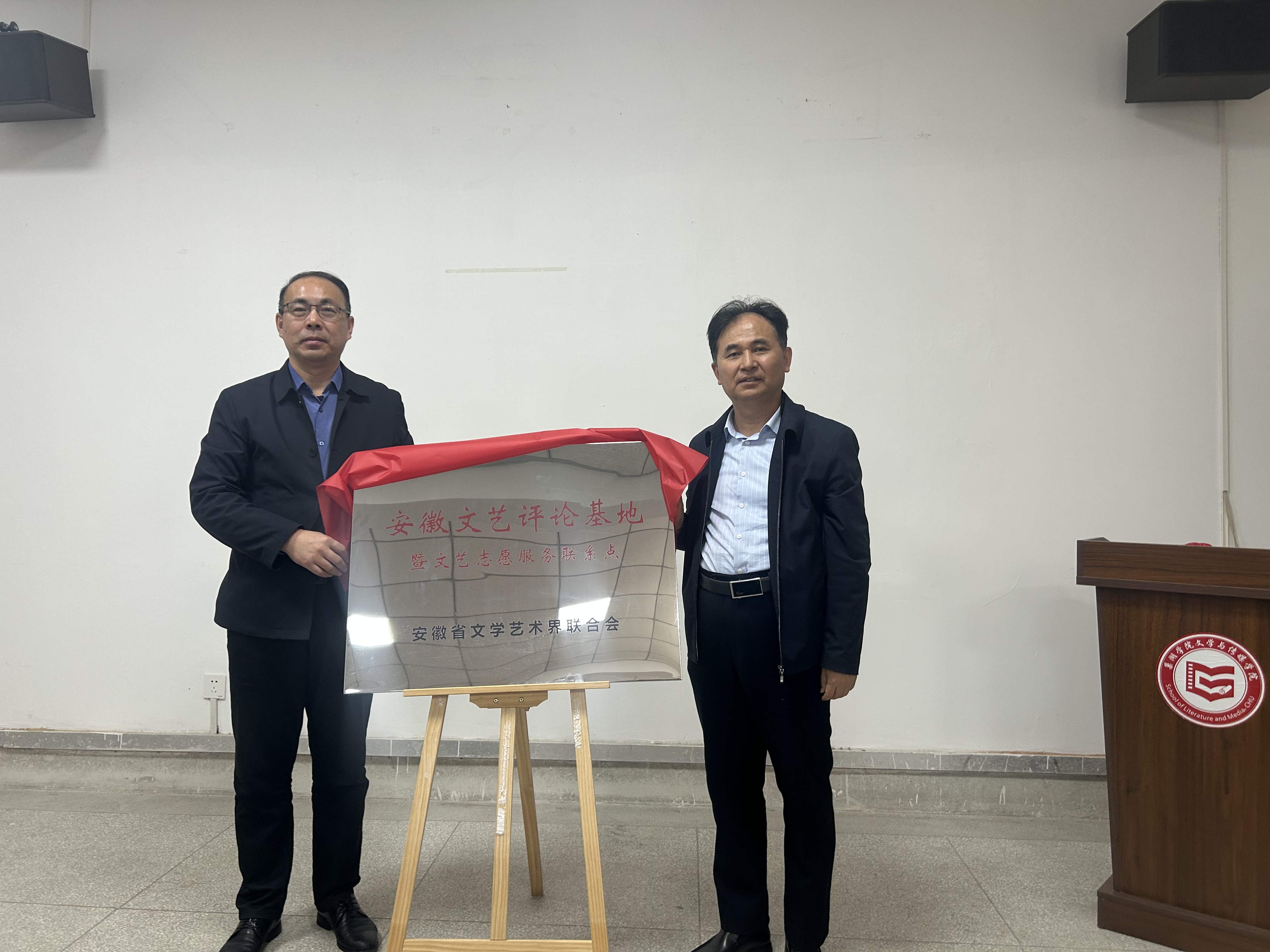 會上,胡勝宣讀了省文聯關于同意在巢湖學院設立安徽文藝評論基地暨文藝志愿服務聯系點的批復。林勇和丁俊苗共同為安徽文藝評論基地暨文藝志愿服務聯系點揭牌。史培剛為基地贈送了書法作品“激濁揚清”。