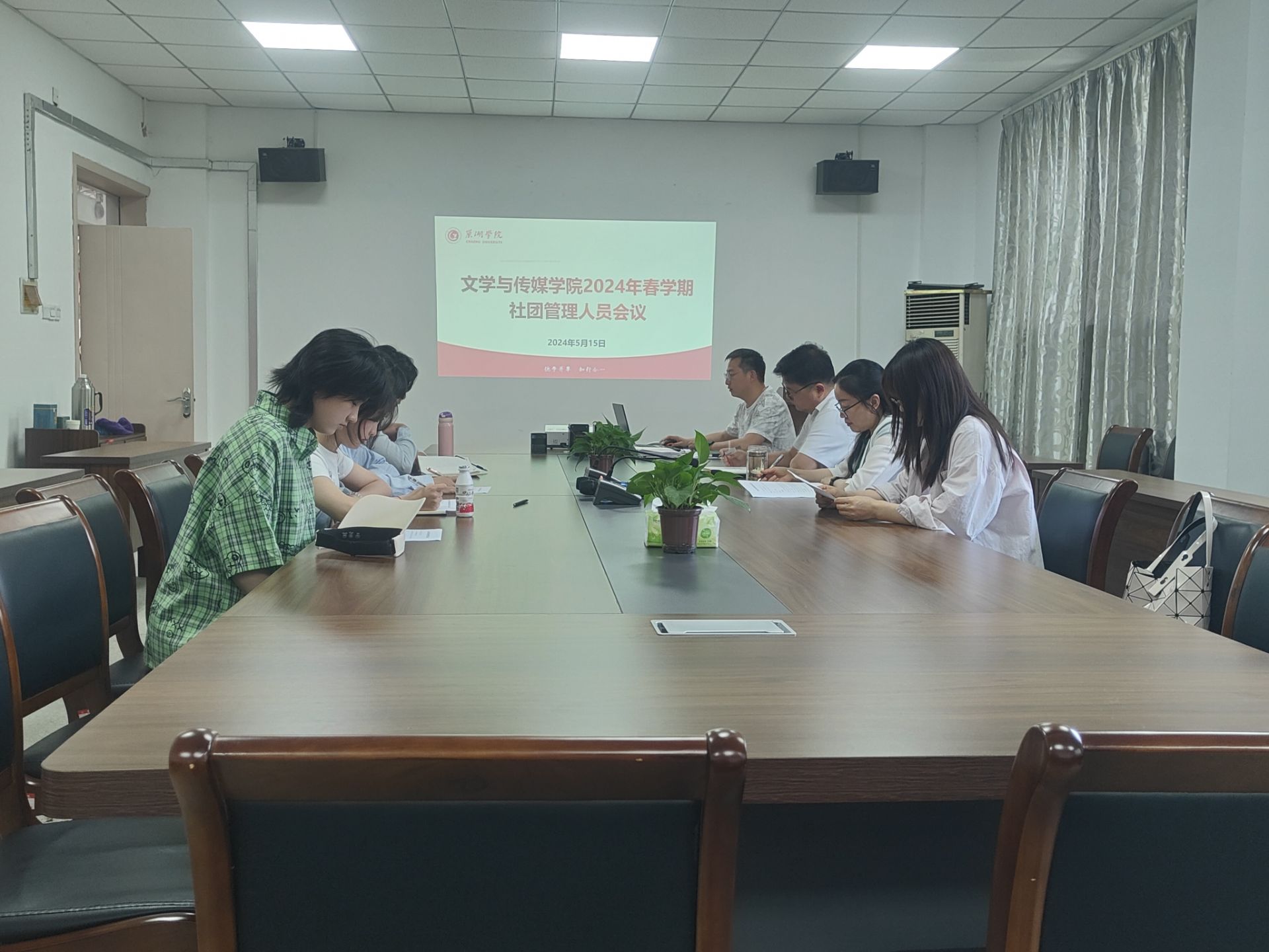 為加強學生社團管理,促進社團各項工作的有序開展,5月15日下午,文學與傳媒學院在敏行樓大會議室召開2024年春學期社團工作人員會議。會議由學院團委書記程生風主持,院黨委書記袁鳳琴、院黨委副書記孫冰、各社團指導老師和社團負責人參加了此次會議。