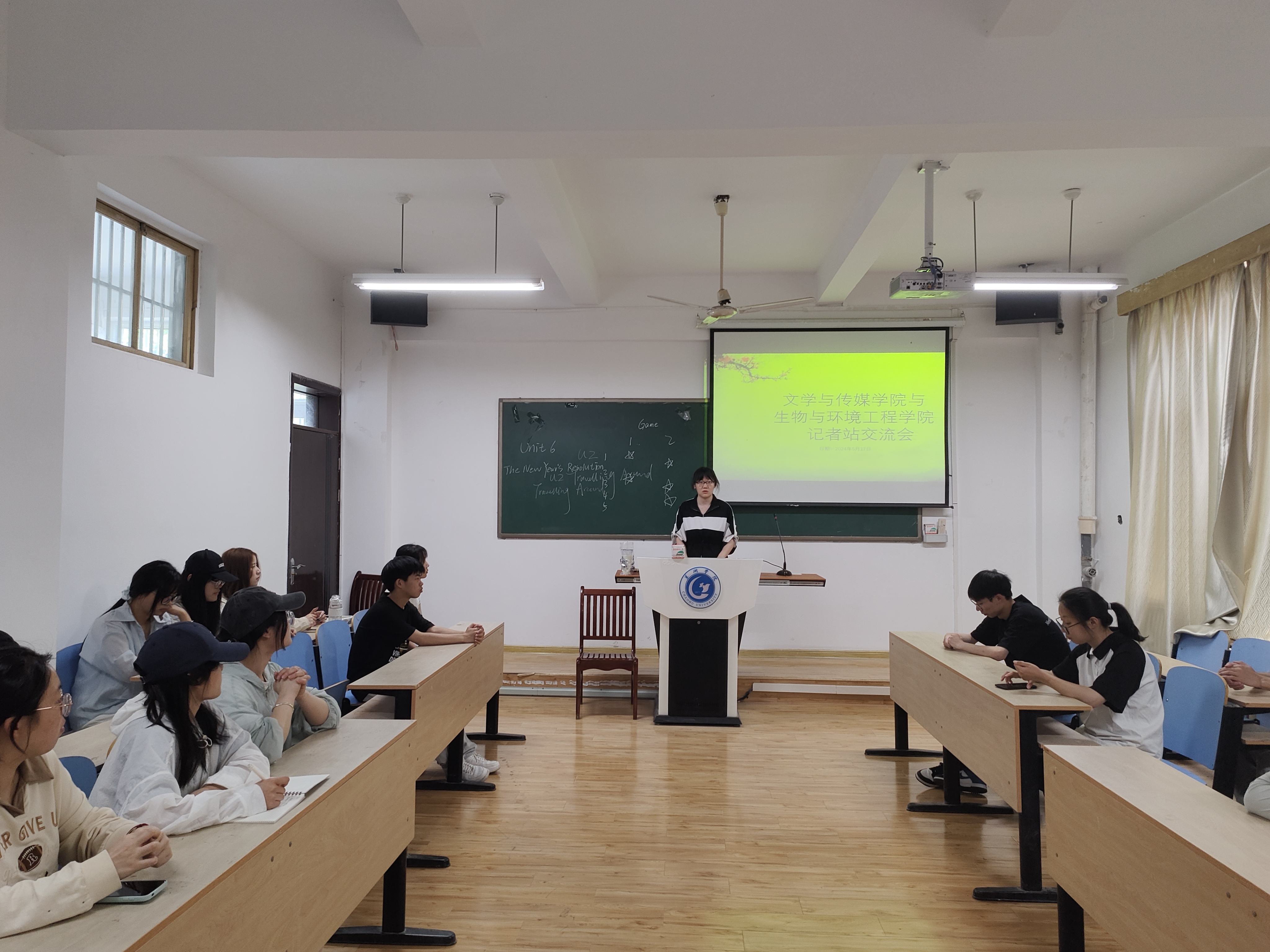 為加強學院記者站建設,進一步提升網絡宣傳工作水平,5月17日下午,文學與傳媒院記者站與生物與環境工程學院記者站在敏行樓110教室召開交流會,本次會議由文學與傳媒學院記者站站長趙雅主持。
