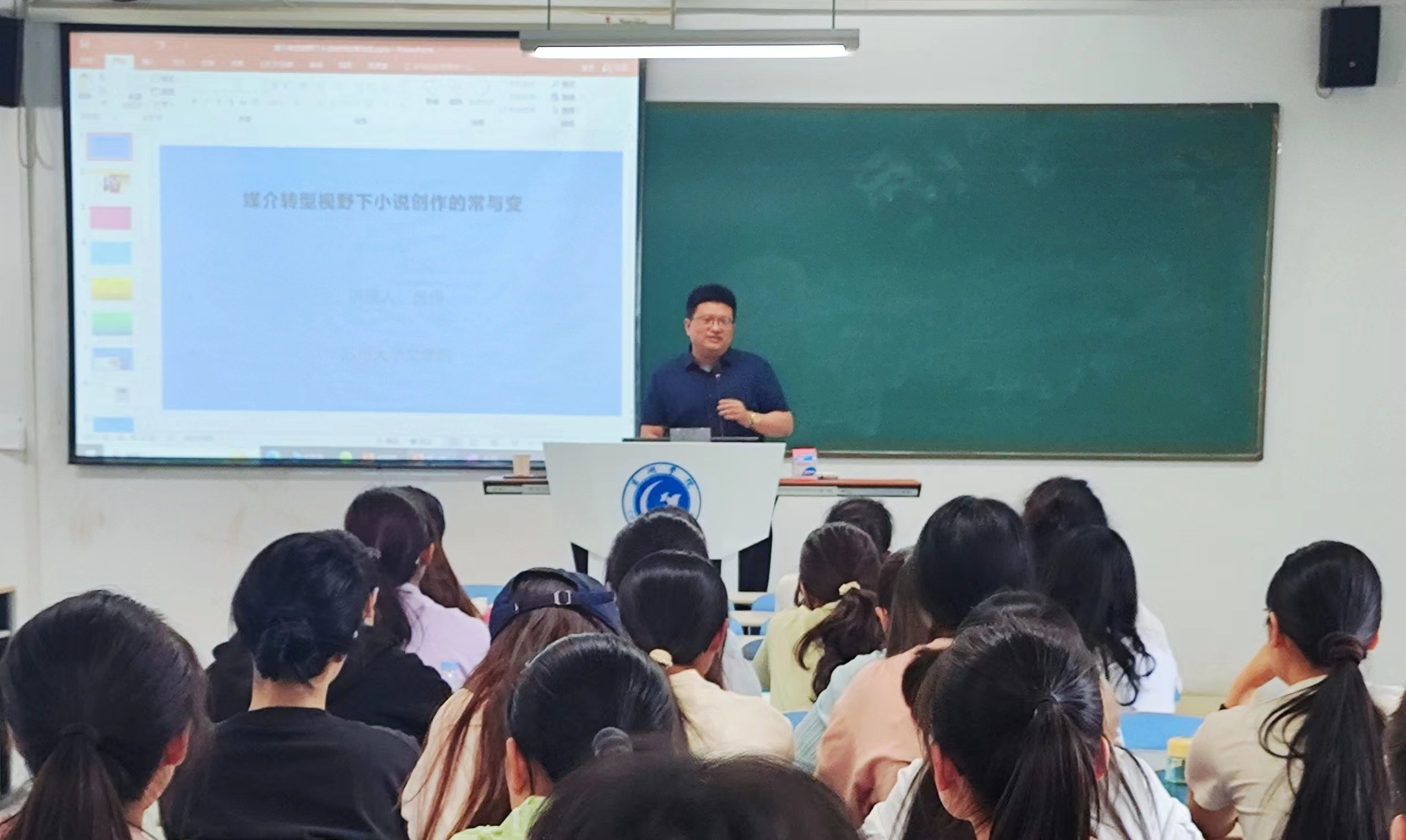 房偉從媒介轉型的視野出發,對當代小說發展的現狀和問題進行了深入的分析和闡釋,他認為網絡文學與純文學是相互借鑒和促進的,二者的區分并不會影響讀者對小說的理解和接受,文學精神也并不會因為媒介的轉型而消亡。此外,房偉還探討了大學生小說創作的弊病,他強調寫小說要充分準備,主動觀察和體驗生活,注重構思和想象力。房偉教授將理論闡釋和案例分析相結合,給師生們進行了一次有關創意寫作理論與實踐的生動解讀。他還就自己的小說創作實踐和思考與參加講座的師生進行了交流和討論,現場氣氛熱烈。